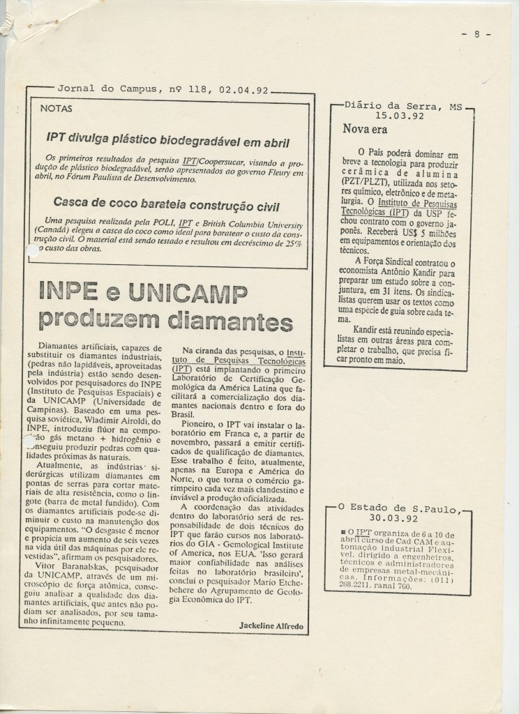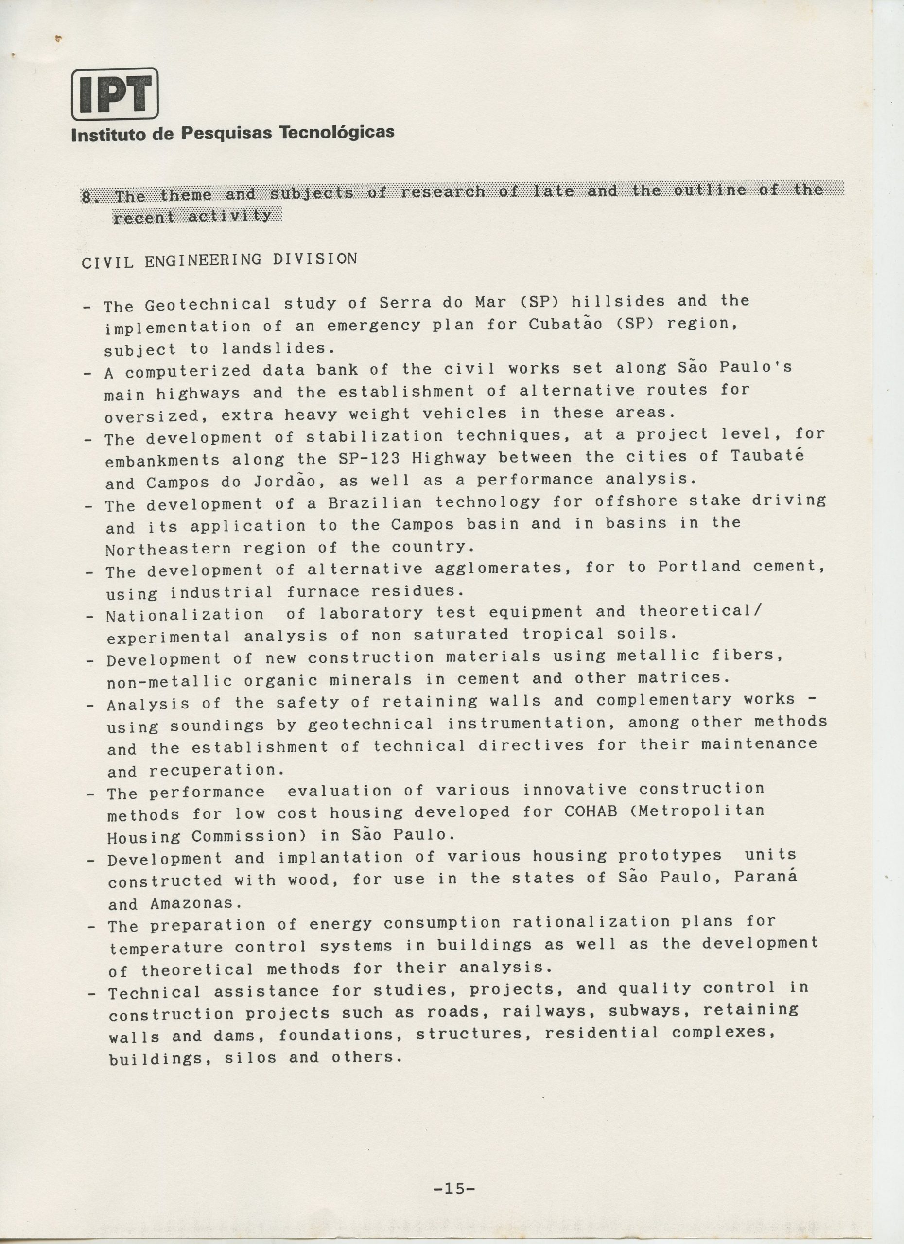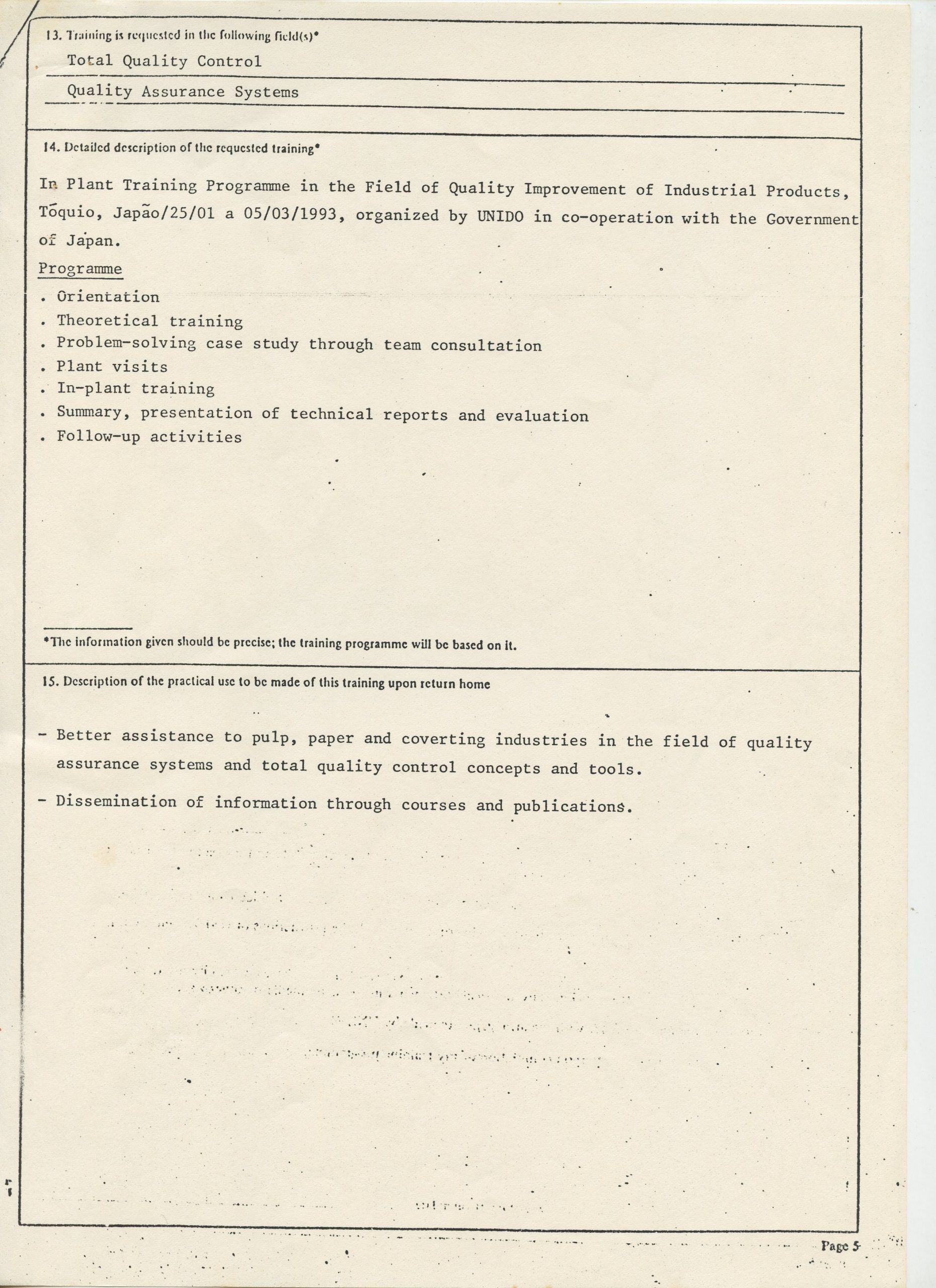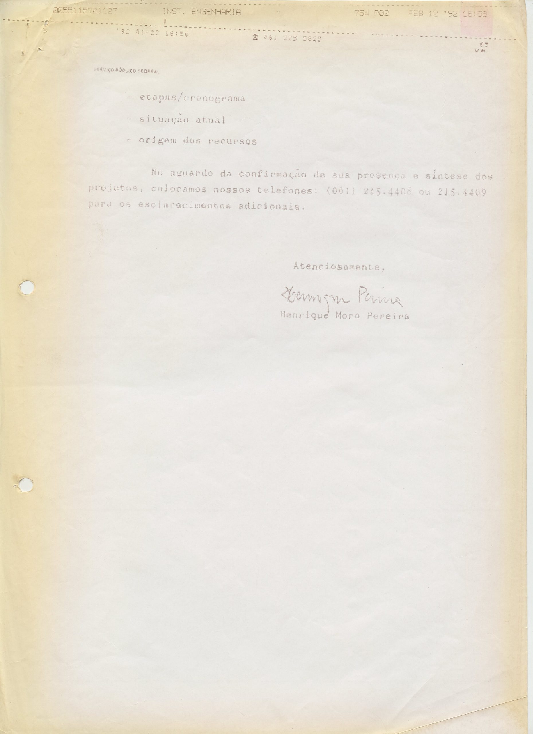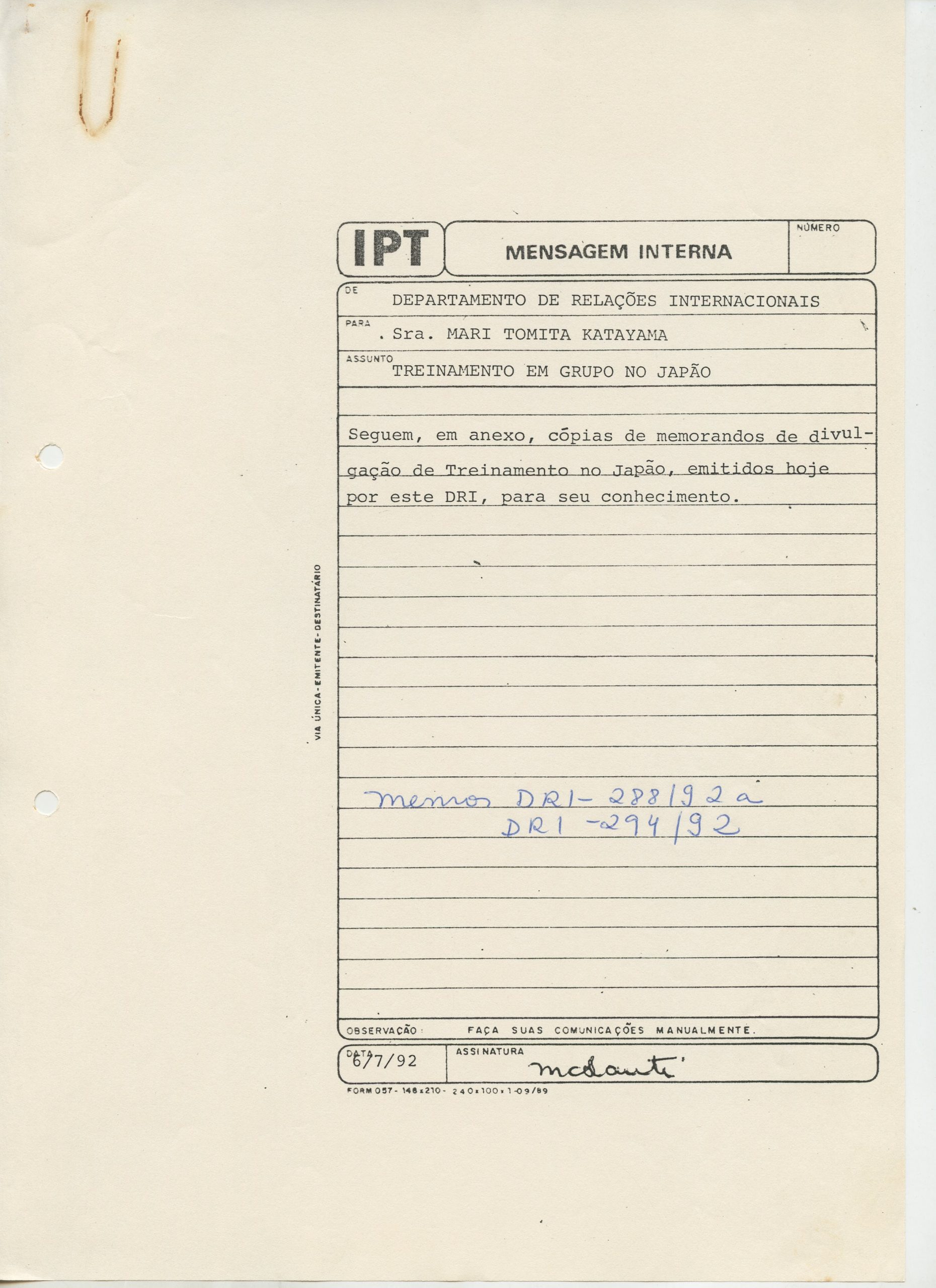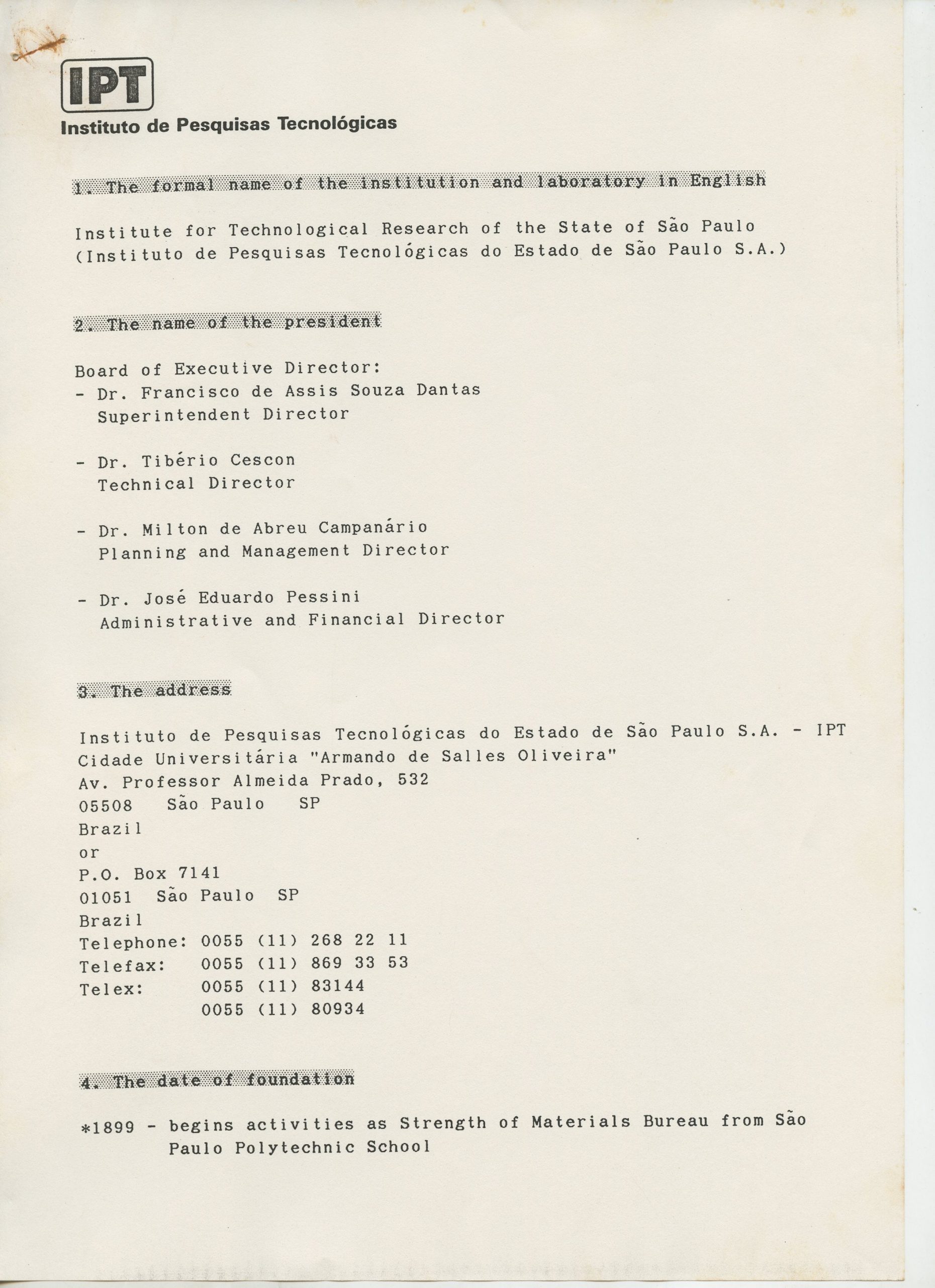 Correspondências gerais da JICA (fax, cartas, memorandos) sobre o comitê, seminários, cursos, relatórios, treinamentos e avaliações. Documentos sem relação e de assuntos diversos: bilhete solicitando doação a empresa Asahi Chemical Industry Co. Ltd., requisição de desembaraço aduaneiro de materiais e equipamentos, bilhete contendo telefone e endereço do Conselheiro Rubens de Souza Sarmento, folheto da campanha do agasalho, cópia de cartão de visita, e cartão de sugestão.