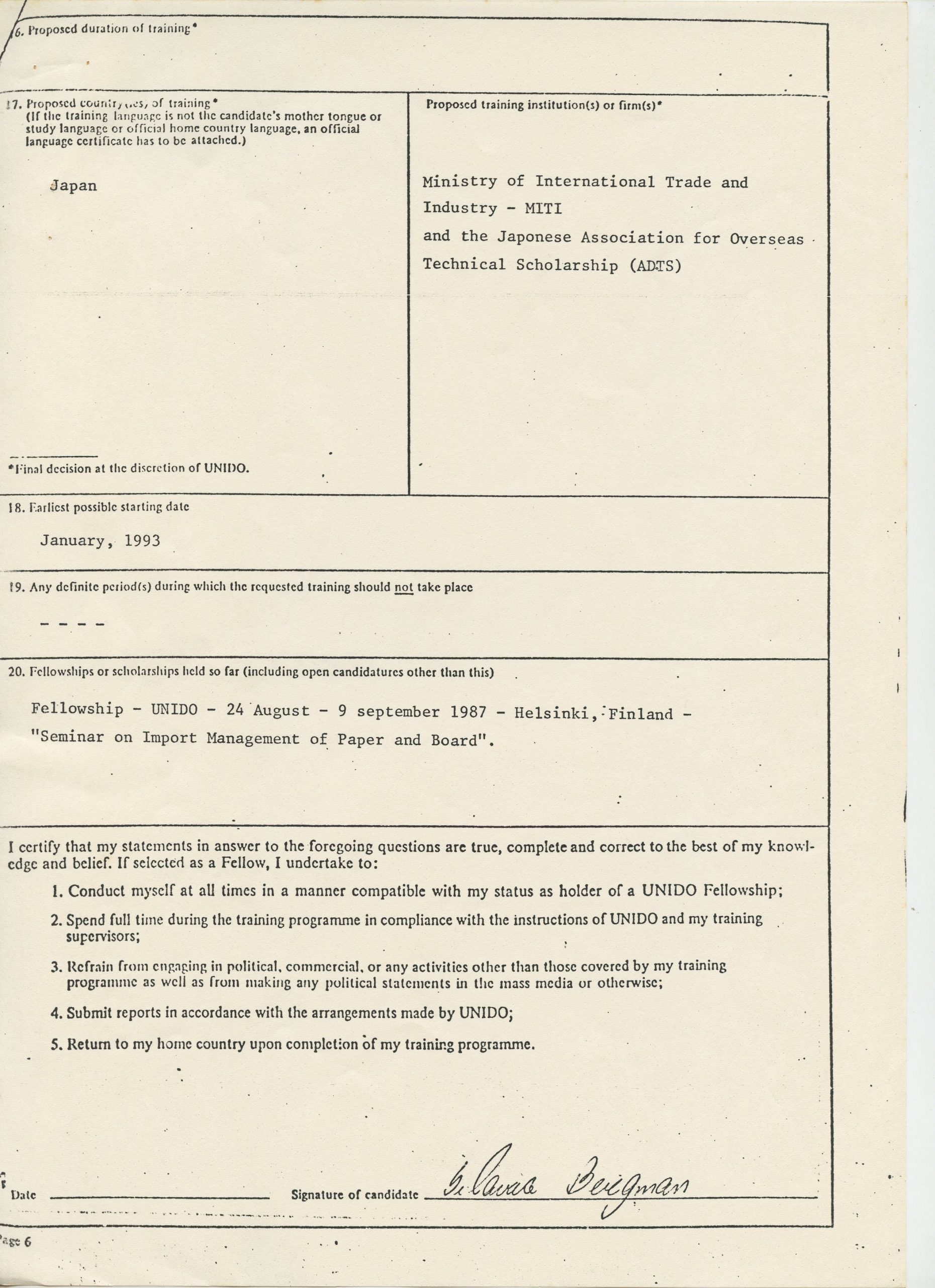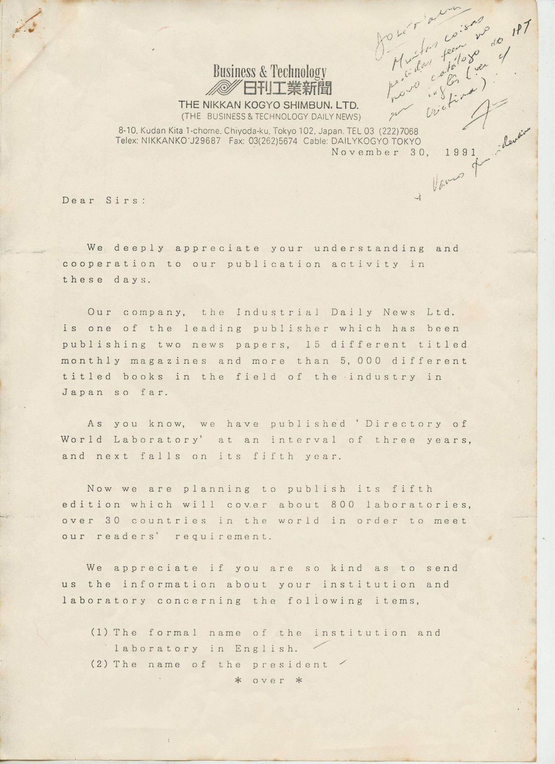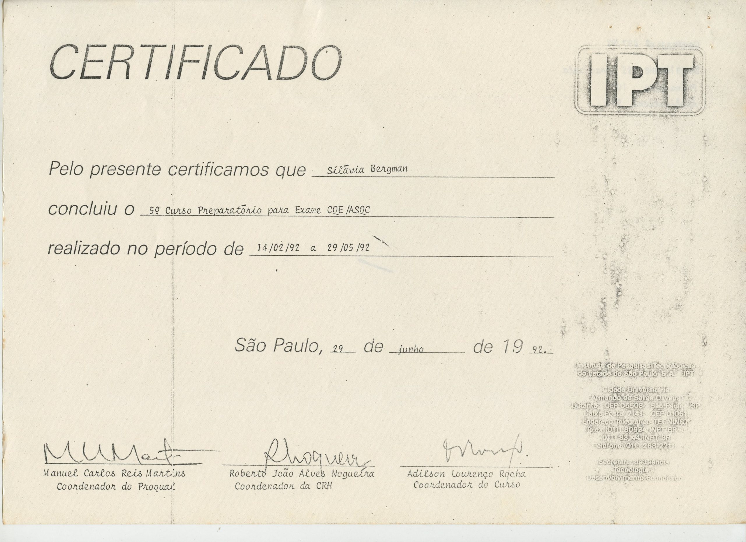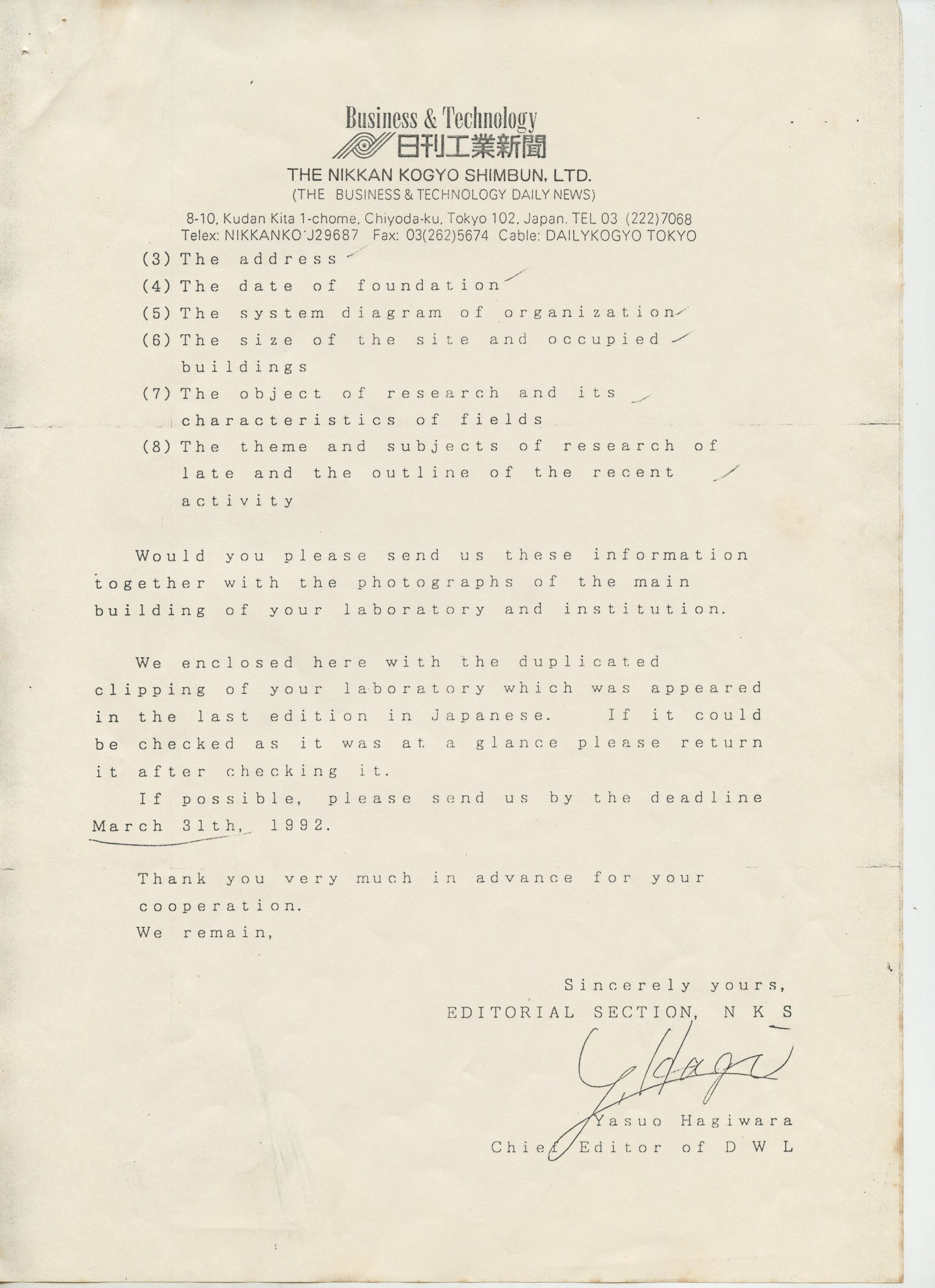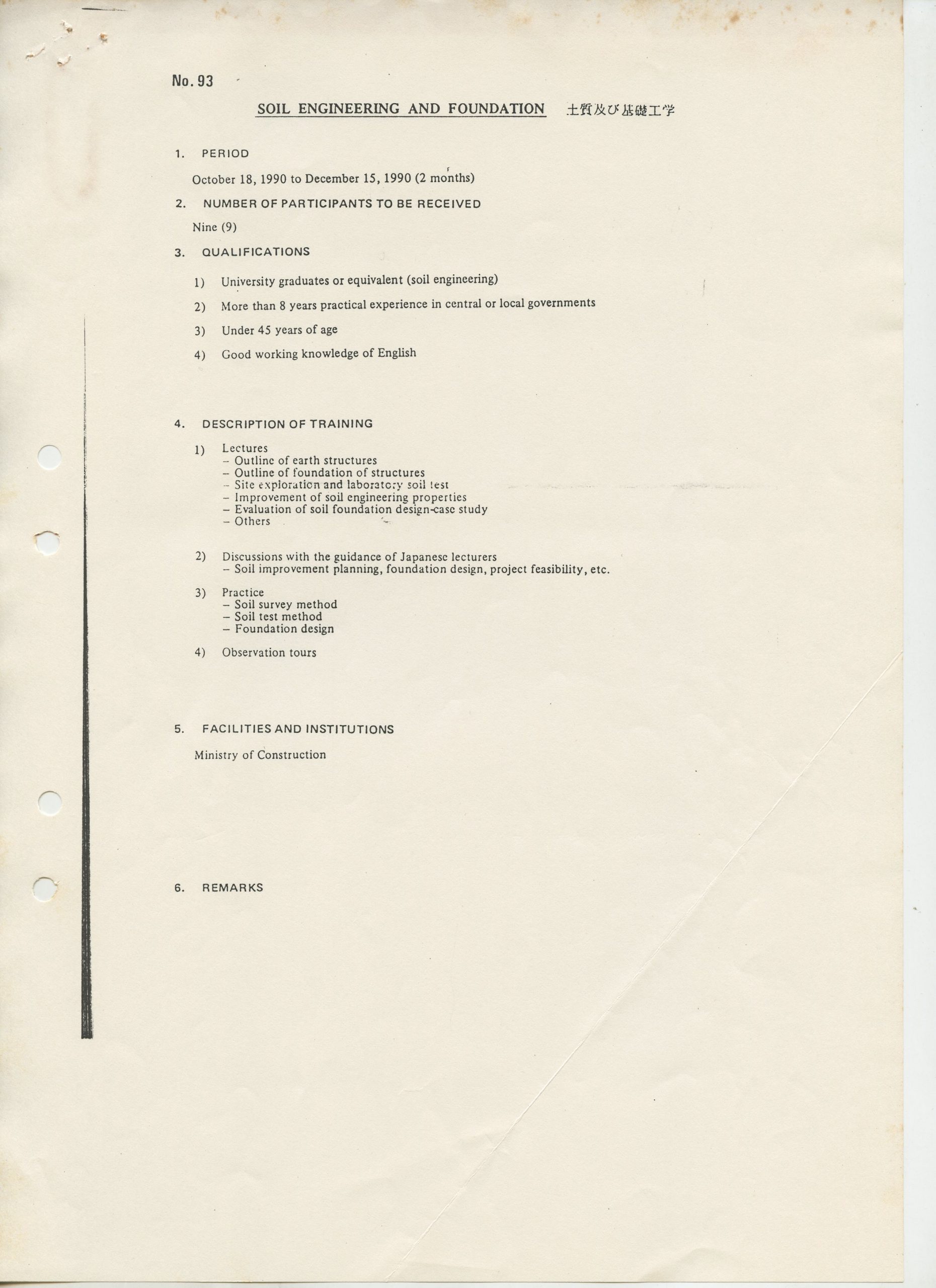Correspondências gerais da JICA (fax, cartas, memorandos) sobre o comitê, seminários, cursos, relatórios, treinamentos e avaliações. Documentos sem relação e de assuntos diversos: bilhete solicitando doação a empresa Asahi Chemical Industry Co. Ltd., requisição de desembaraço aduaneiro de materiais e equipamentos, bilhete contendo telefone e endereço do Conselheiro Rubens de Souza Sarmento, folheto da campanha do agasalho, cópia de cartão de visita, e cartão de sugestão.