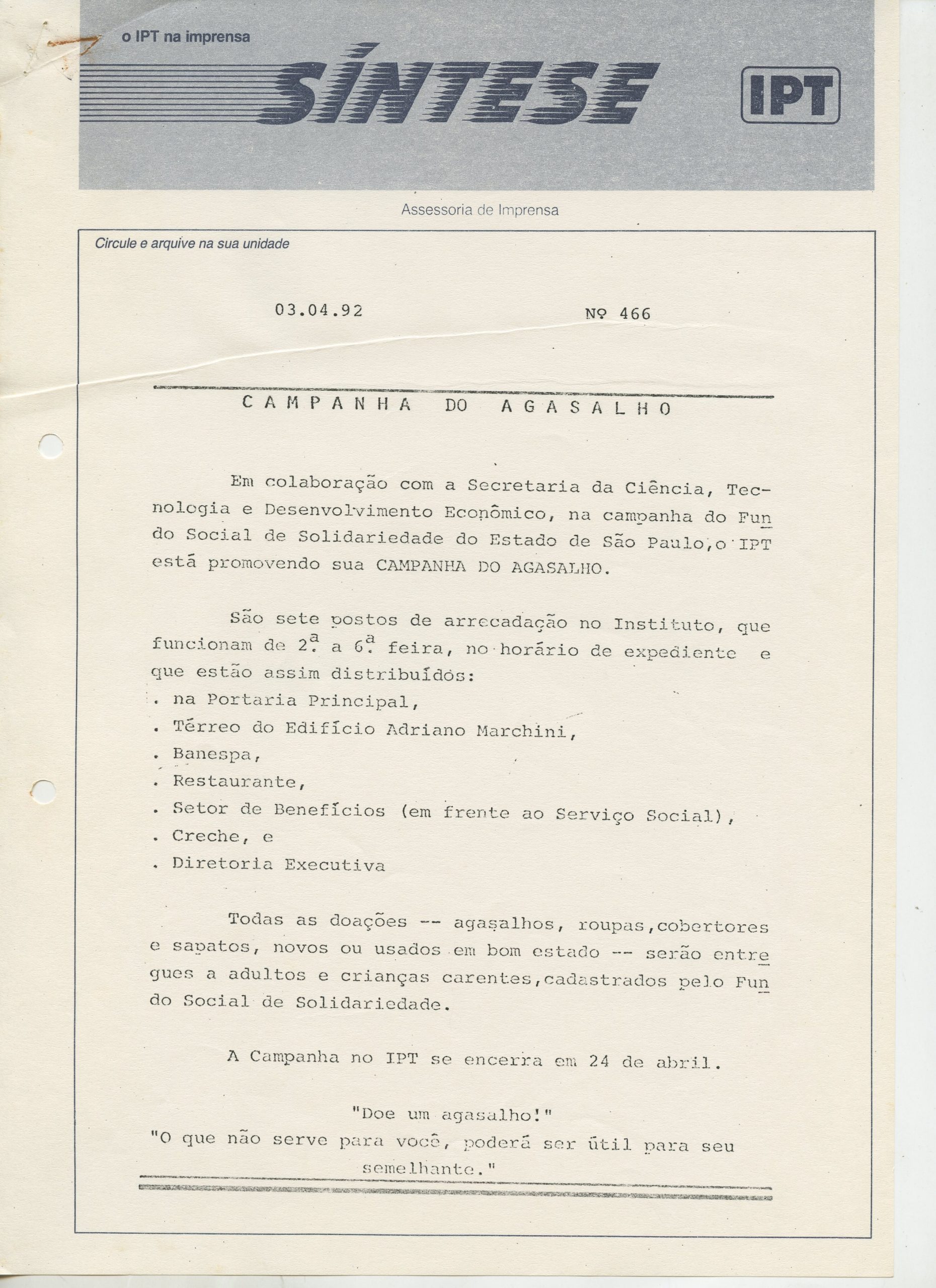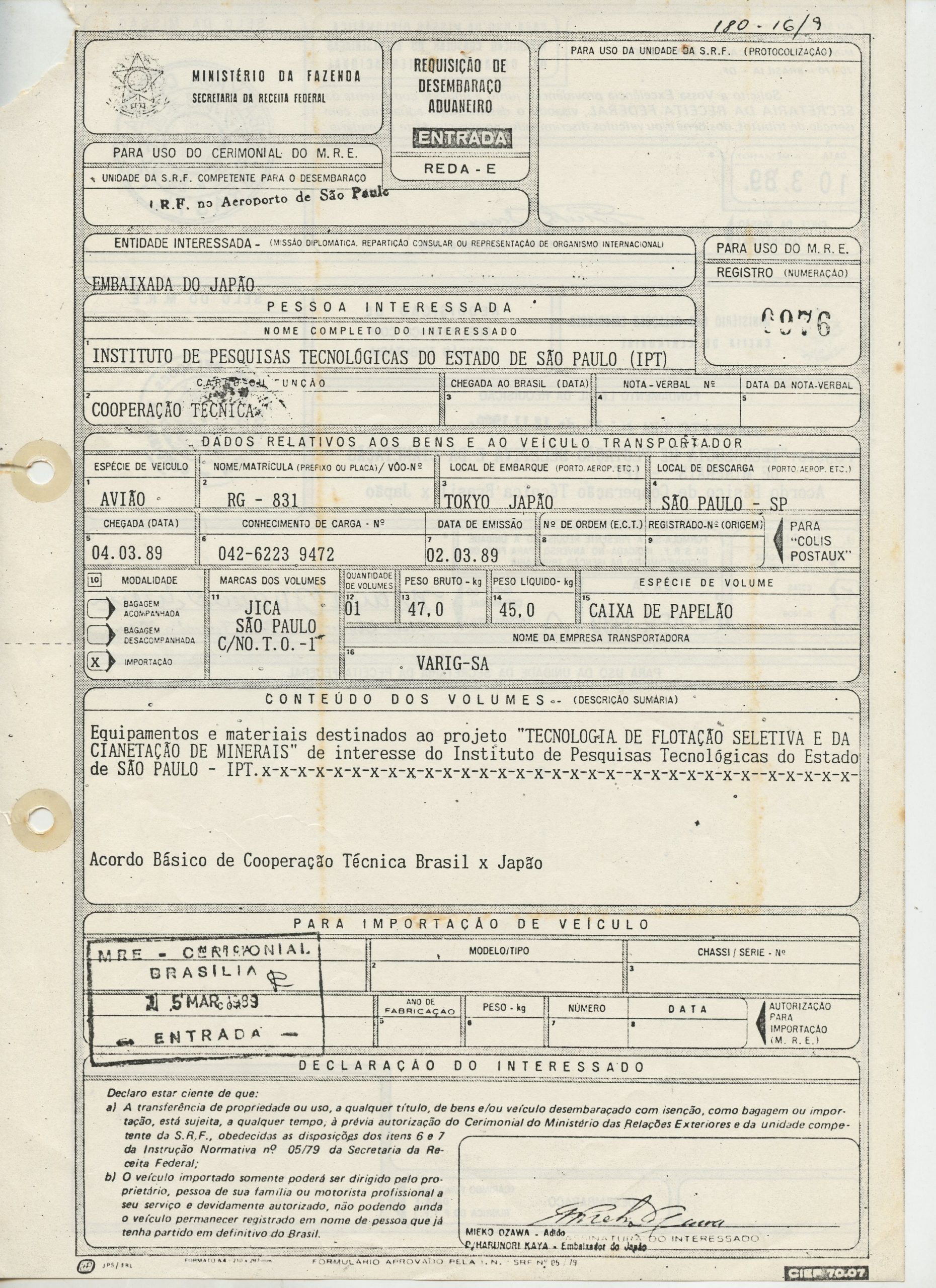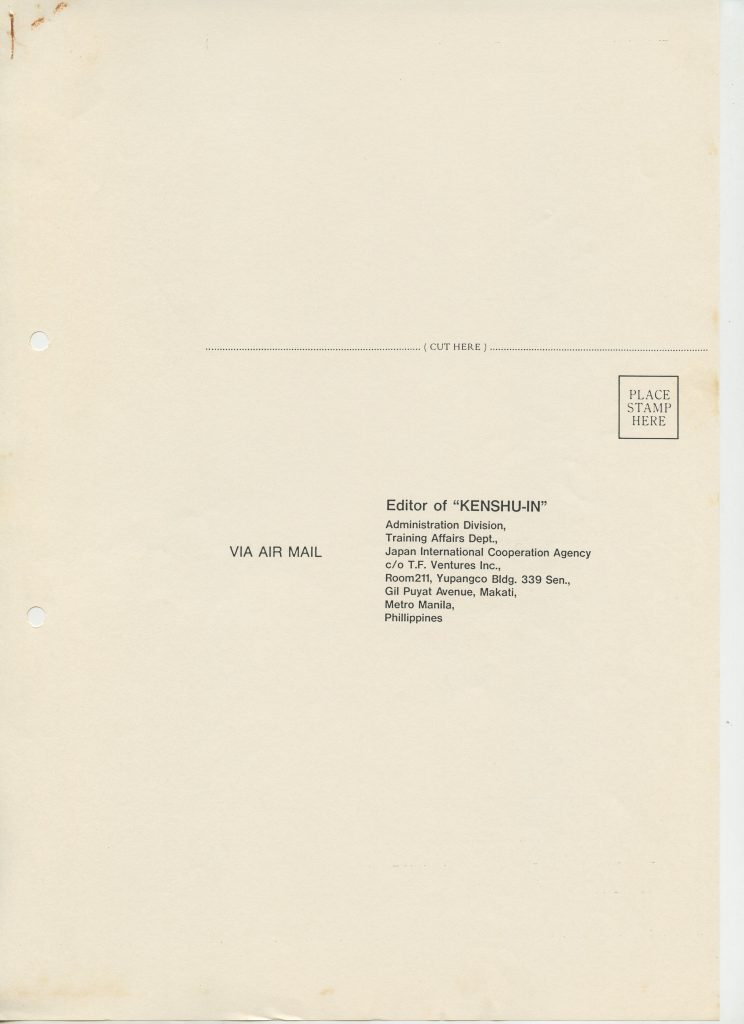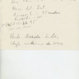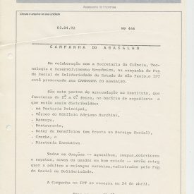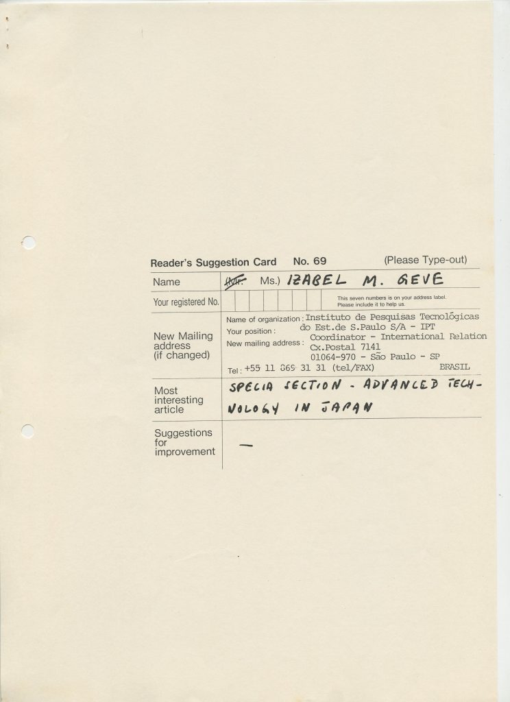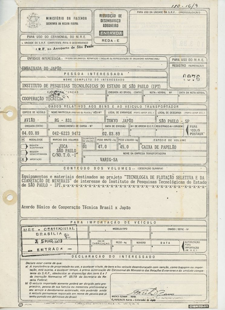 Correspondências gerais da JICA (fax, cartas, memorandos) sobre o comitê, seminários, cursos, relatórios, treinamentos e avaliações. Documentos sem relação e de assuntos diversos: bilhete solicitando doação a empresa Asahi Chemical Industry Co. Ltd., requisição de desembaraço aduaneiro de materiais e equipamentos, bilhete contendo telefone e endereço do Conselheiro Rubens de Souza Sarmento, folheto da campanha do agasalho, cópia de cartão de visita, e cartão de sugestão.