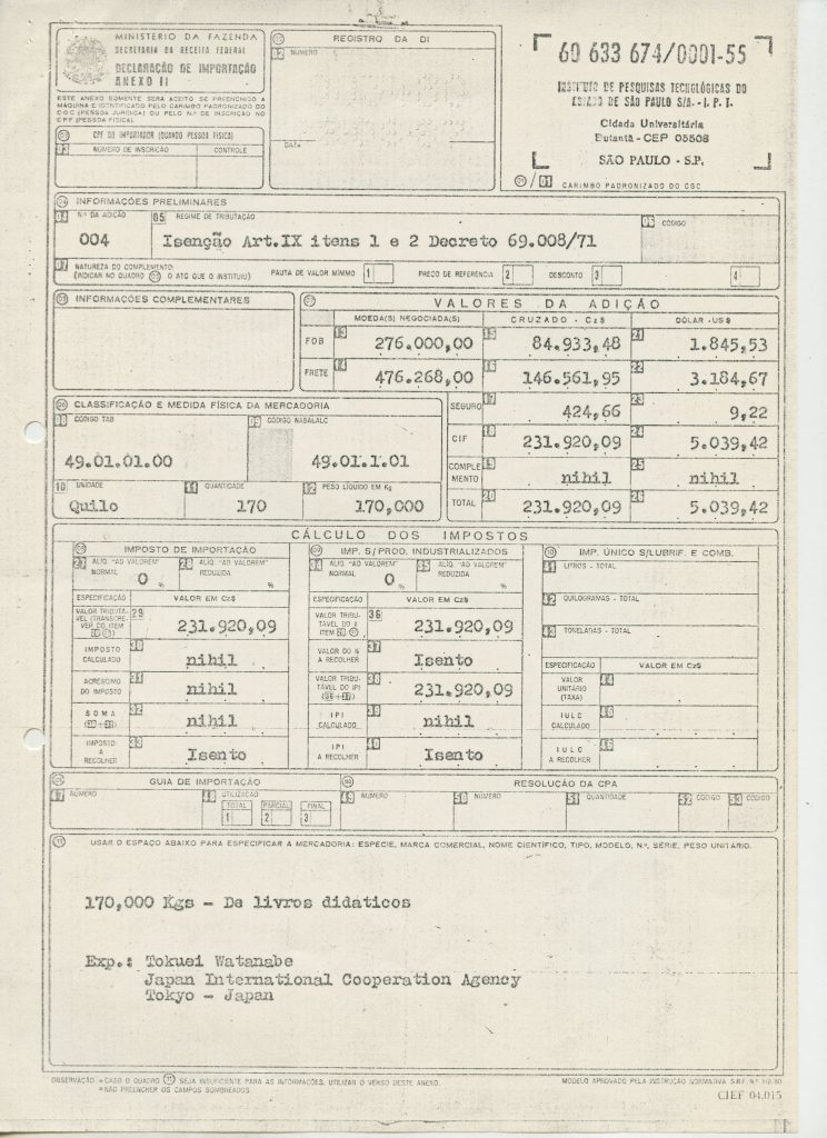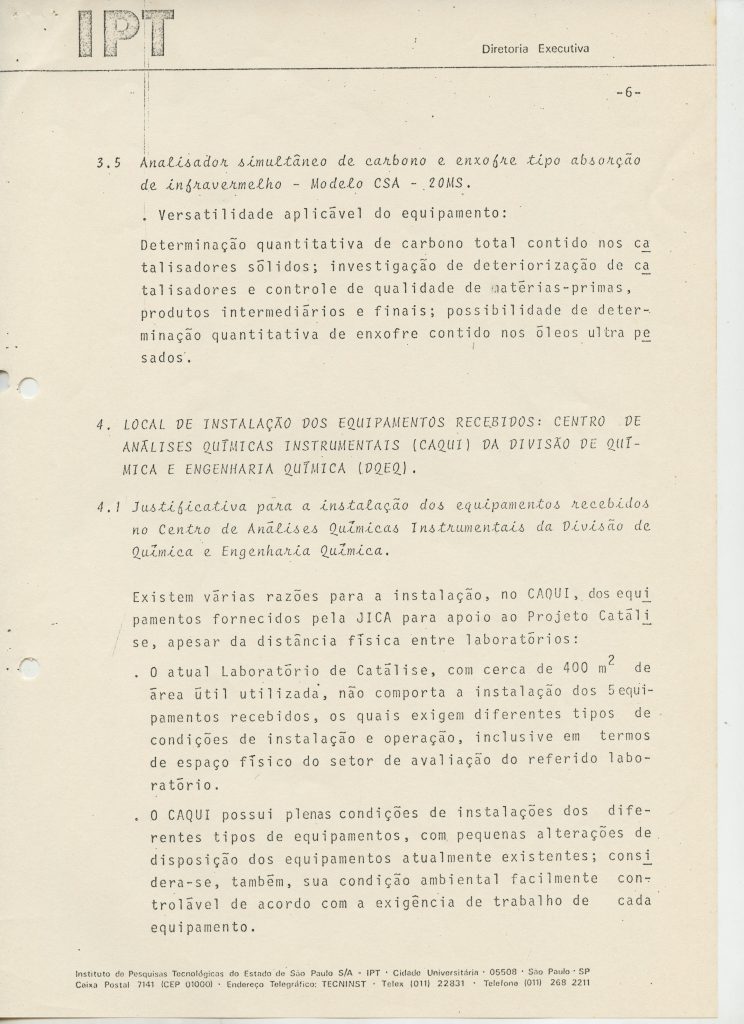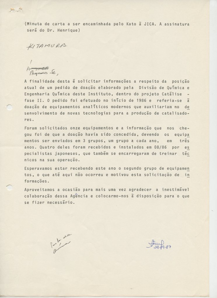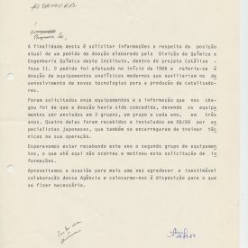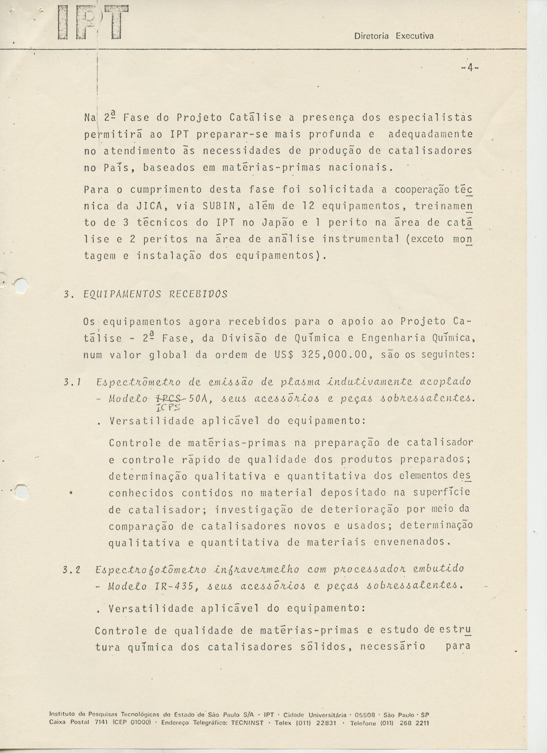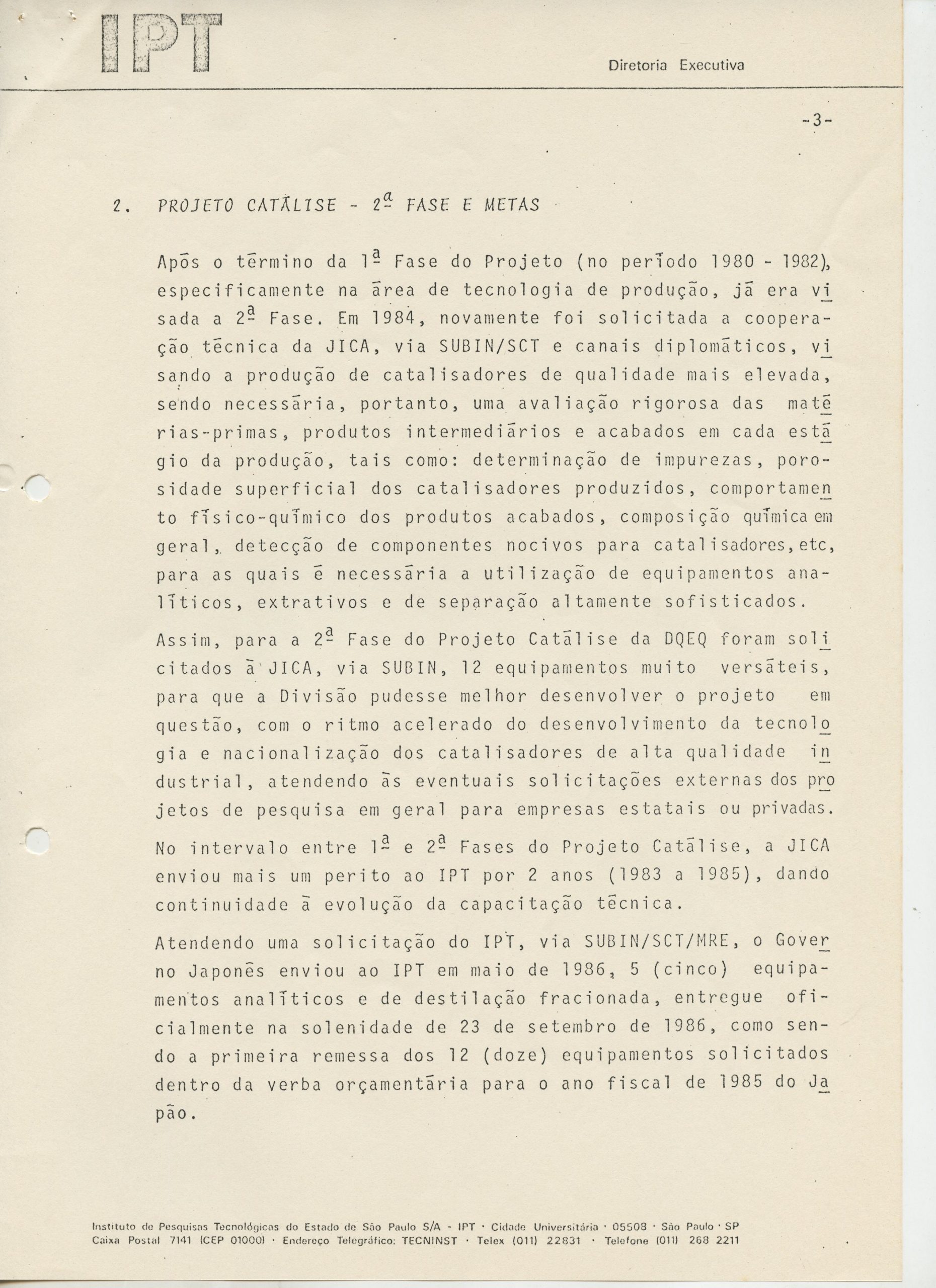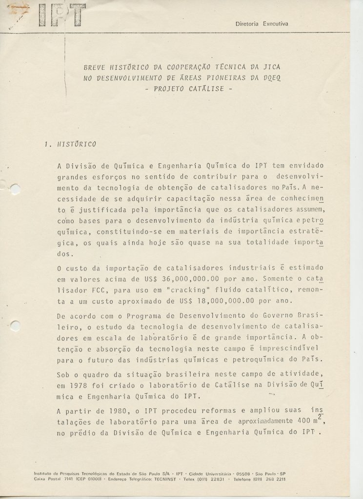 Documentos referentes à 2ª fase do Projeto Catálise Demonstrativos de despesas de importações da JICA Relatório de equipamentos doados Ofícios, comunicados, memorandos referentes ao processo de importação