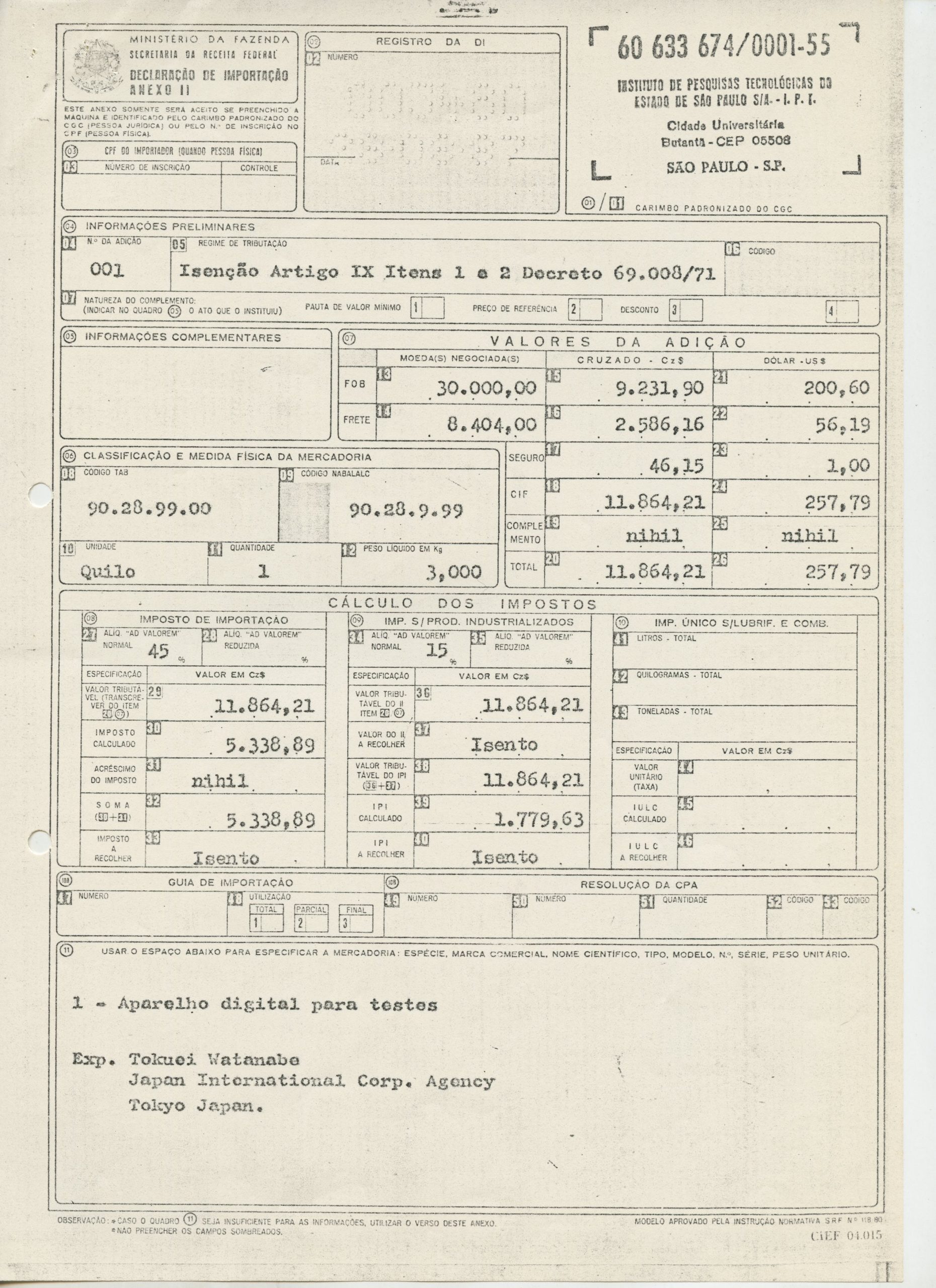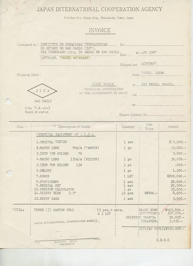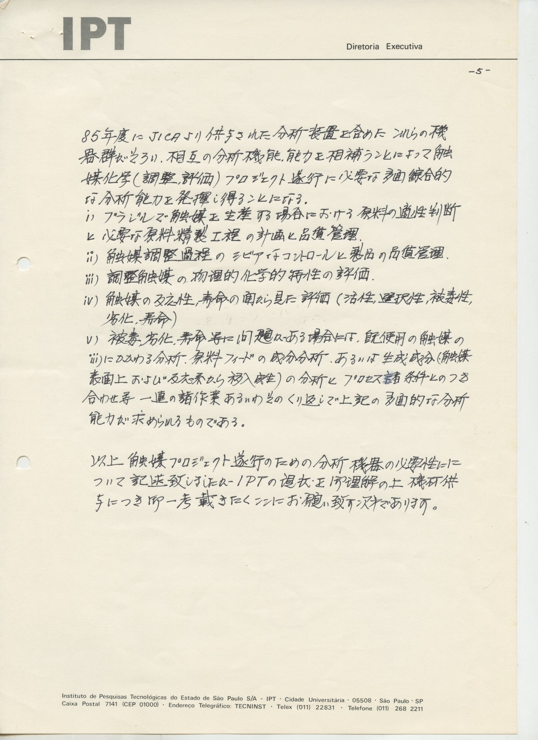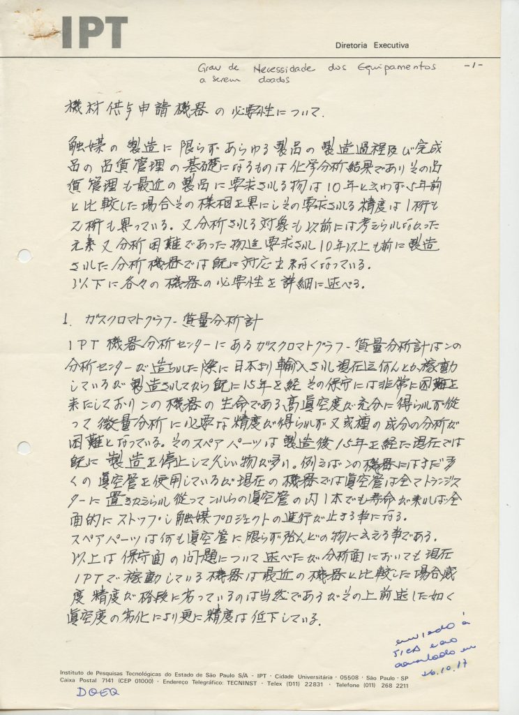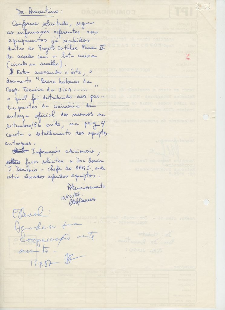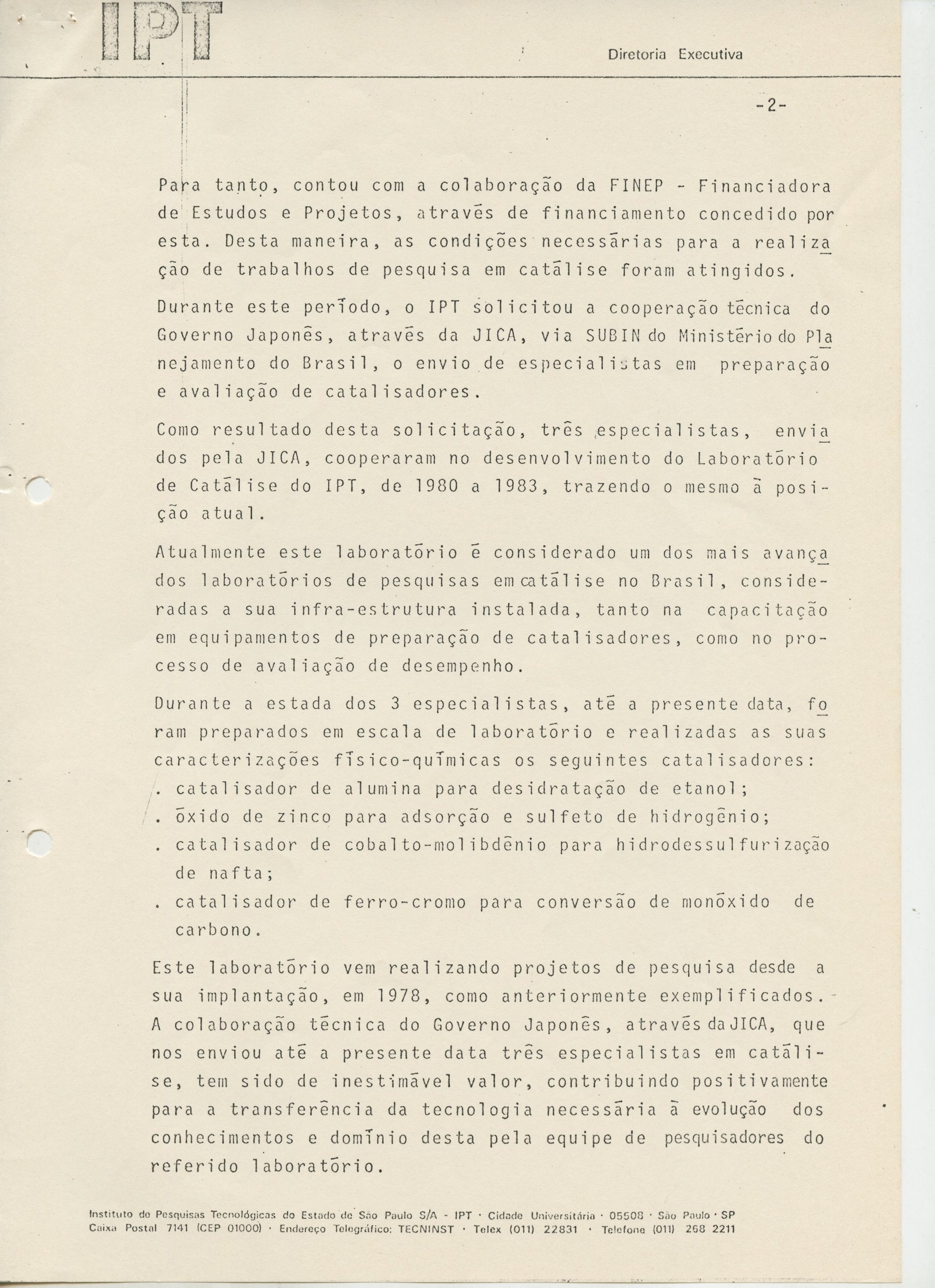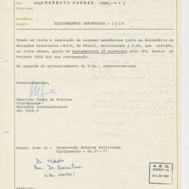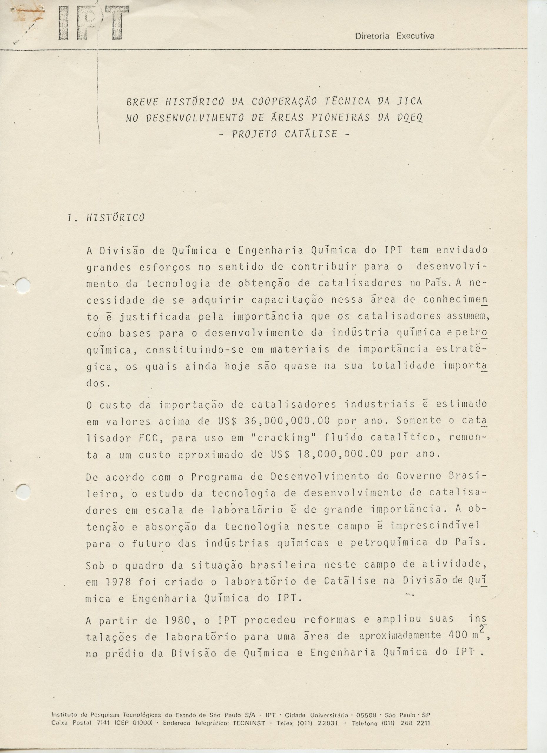 Documentos referentes à 2ª fase do Projeto Catálise Demonstrativos de despesas de importações da JICA Relatório de equipamentos doados Ofícios, comunicados, memorandos referentes ao processo de importação