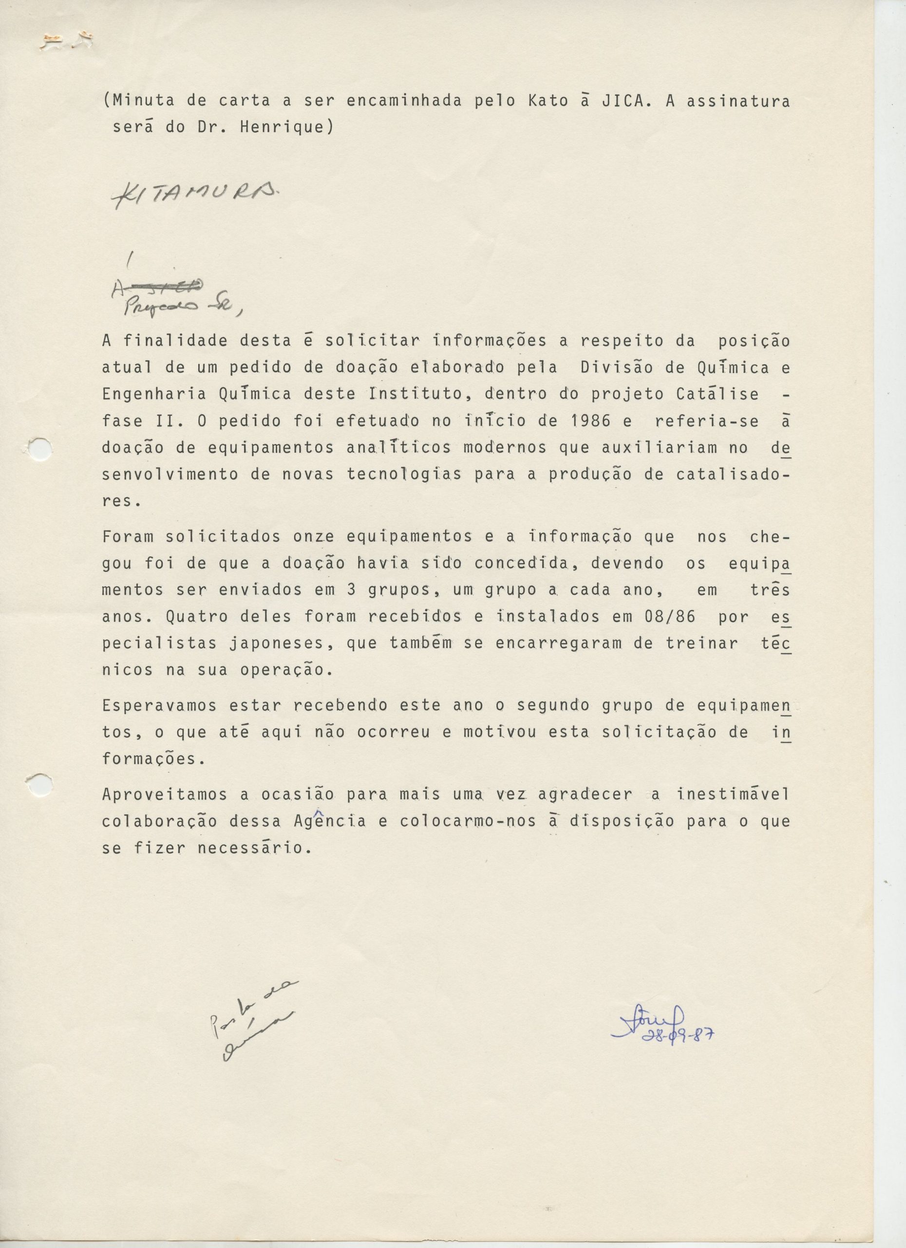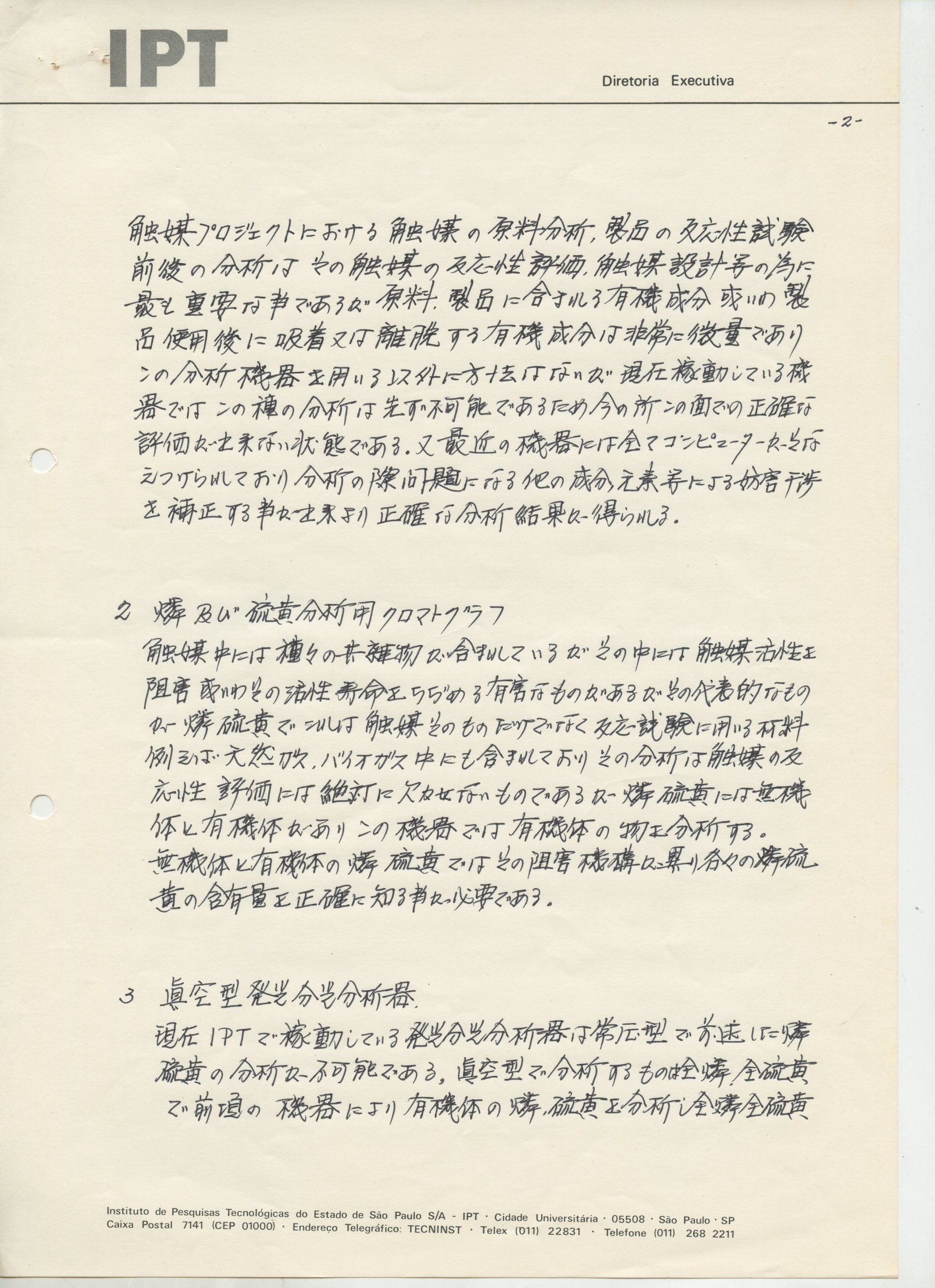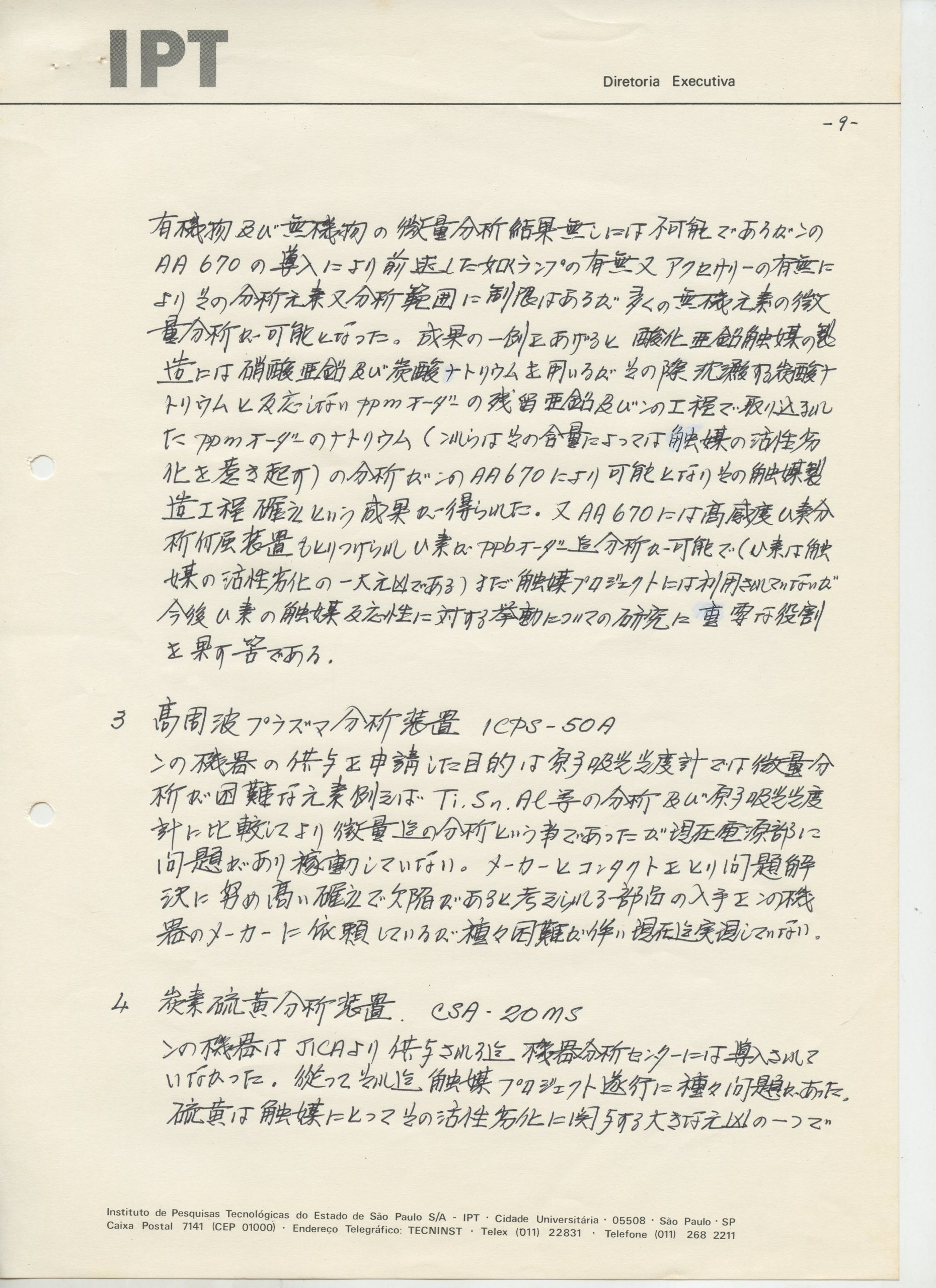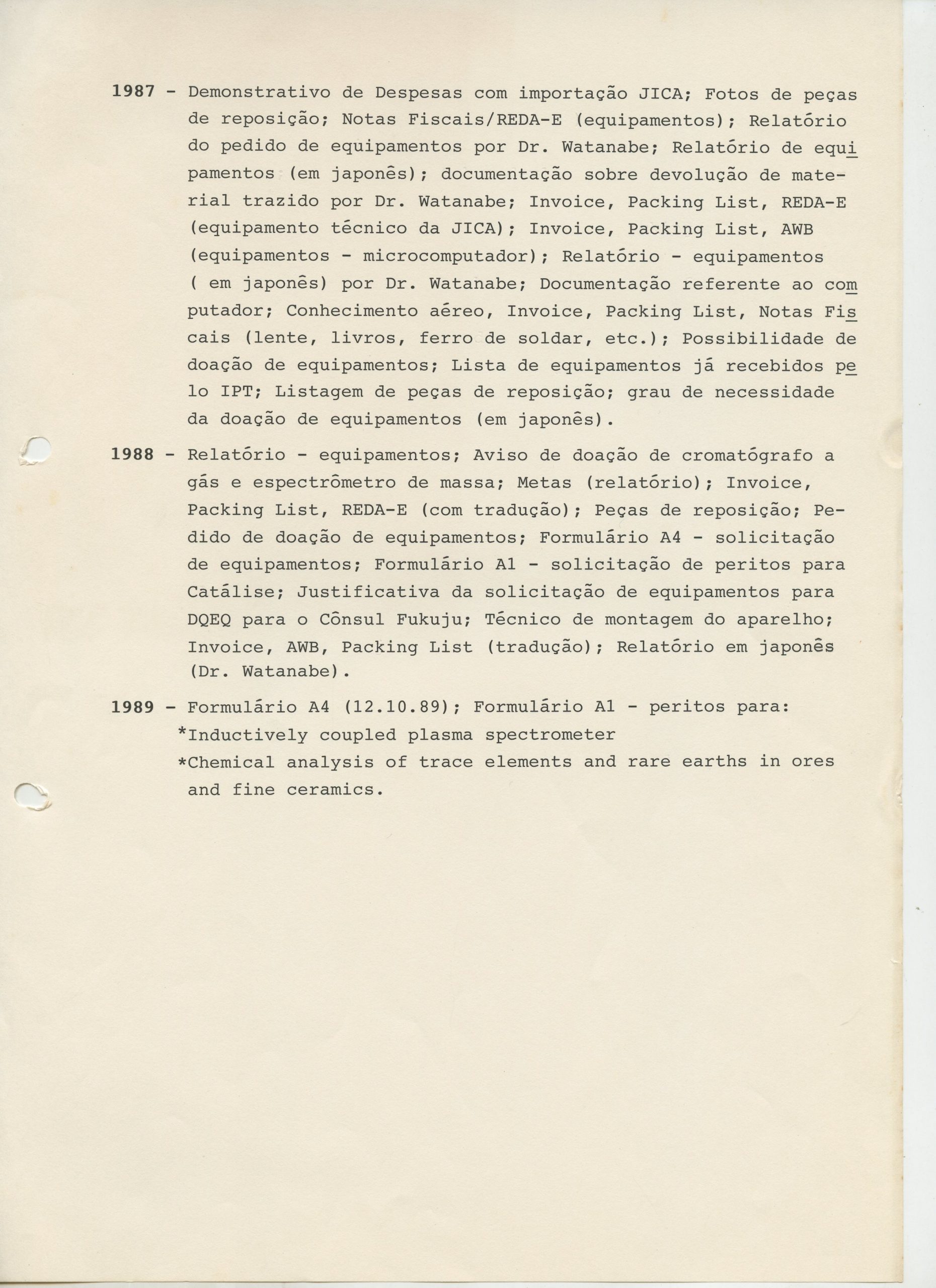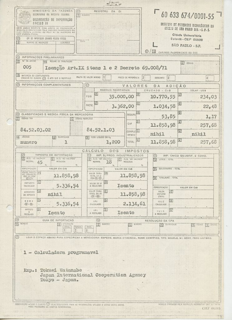 Documentos referentes à 2ª fase do Projeto Catálise Demonstrativos de despesas de importações da JICA Relatório de equipamentos doados Ofícios, comunicados, memorandos referentes ao processo de importação