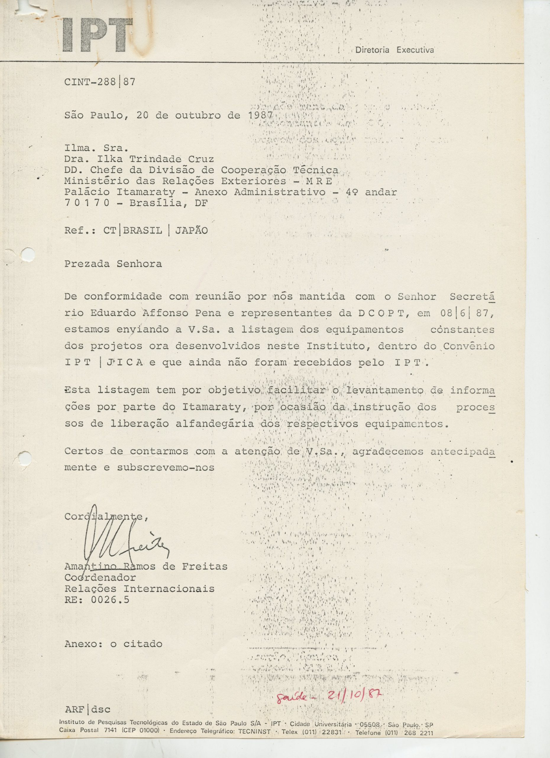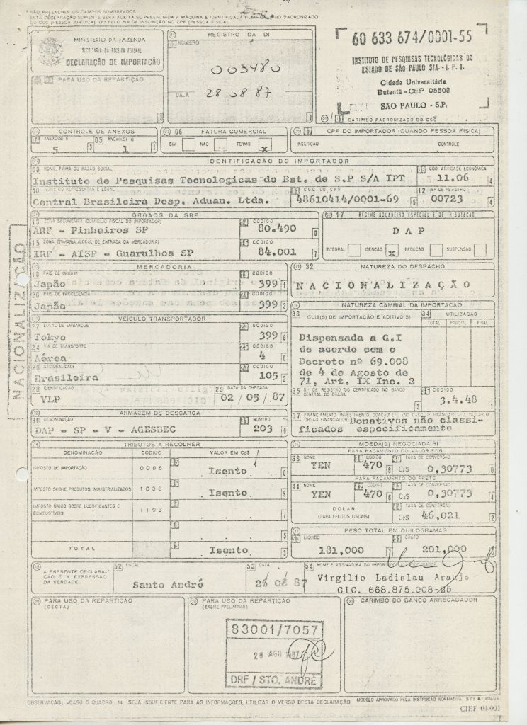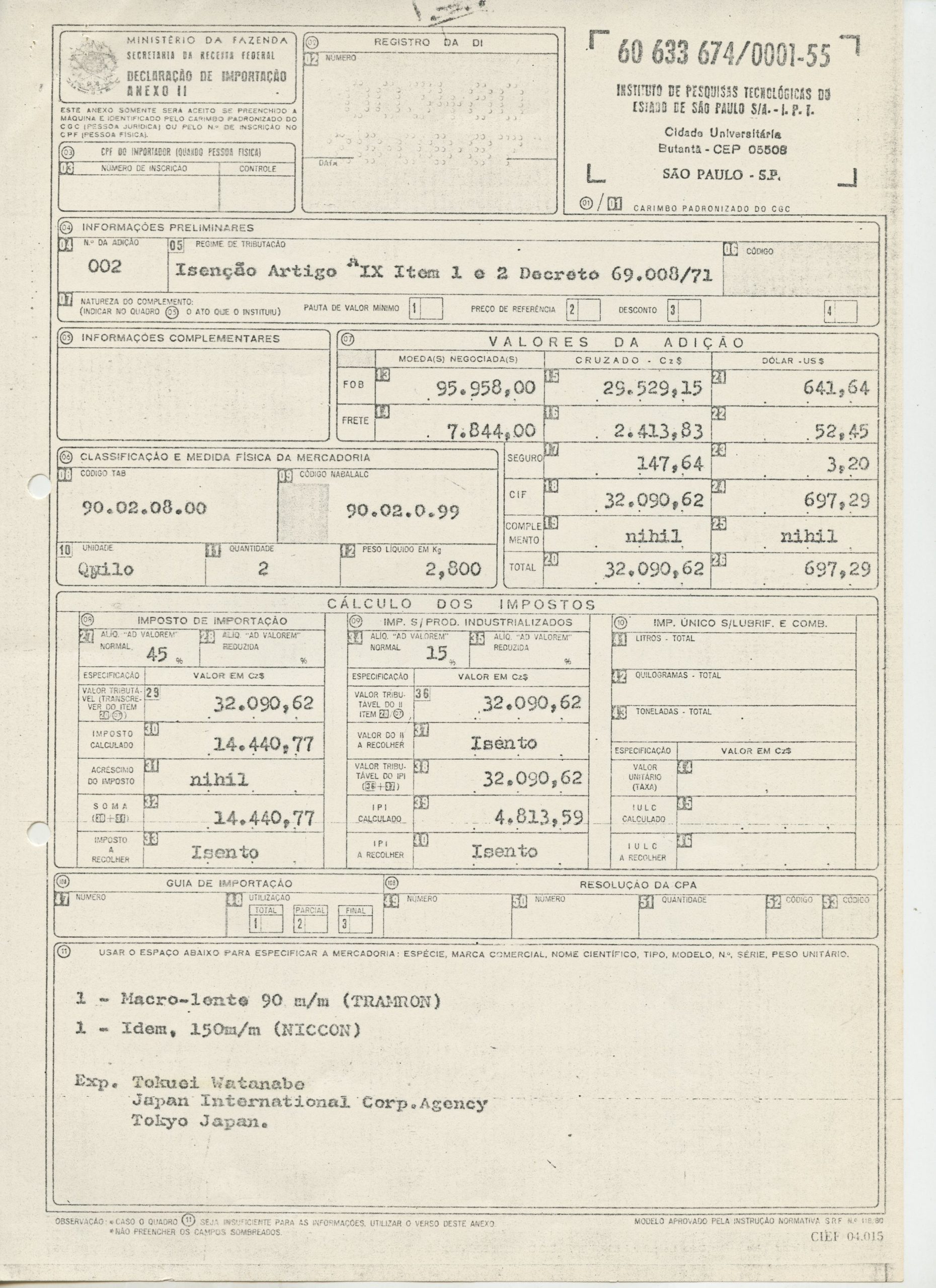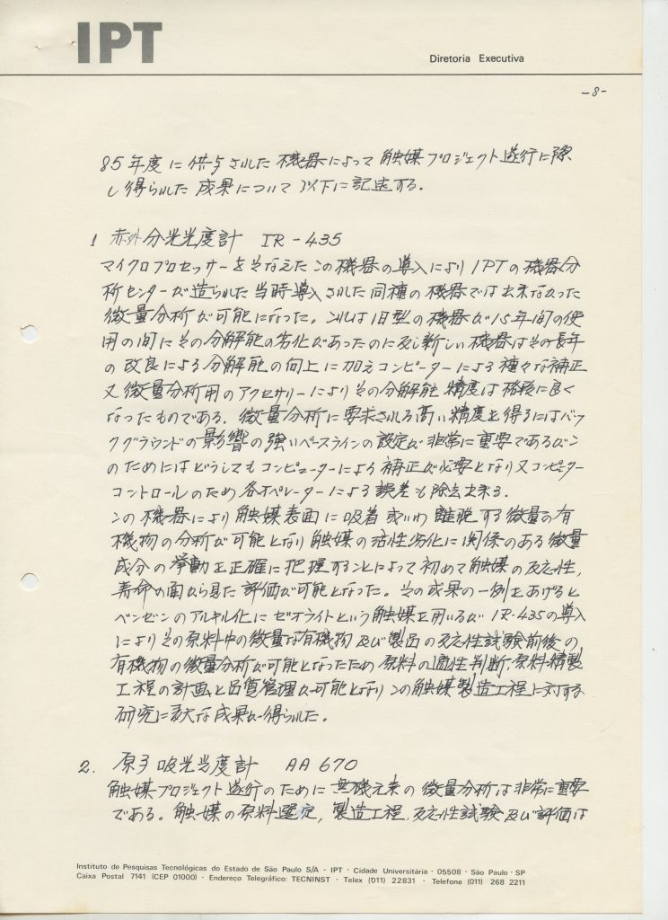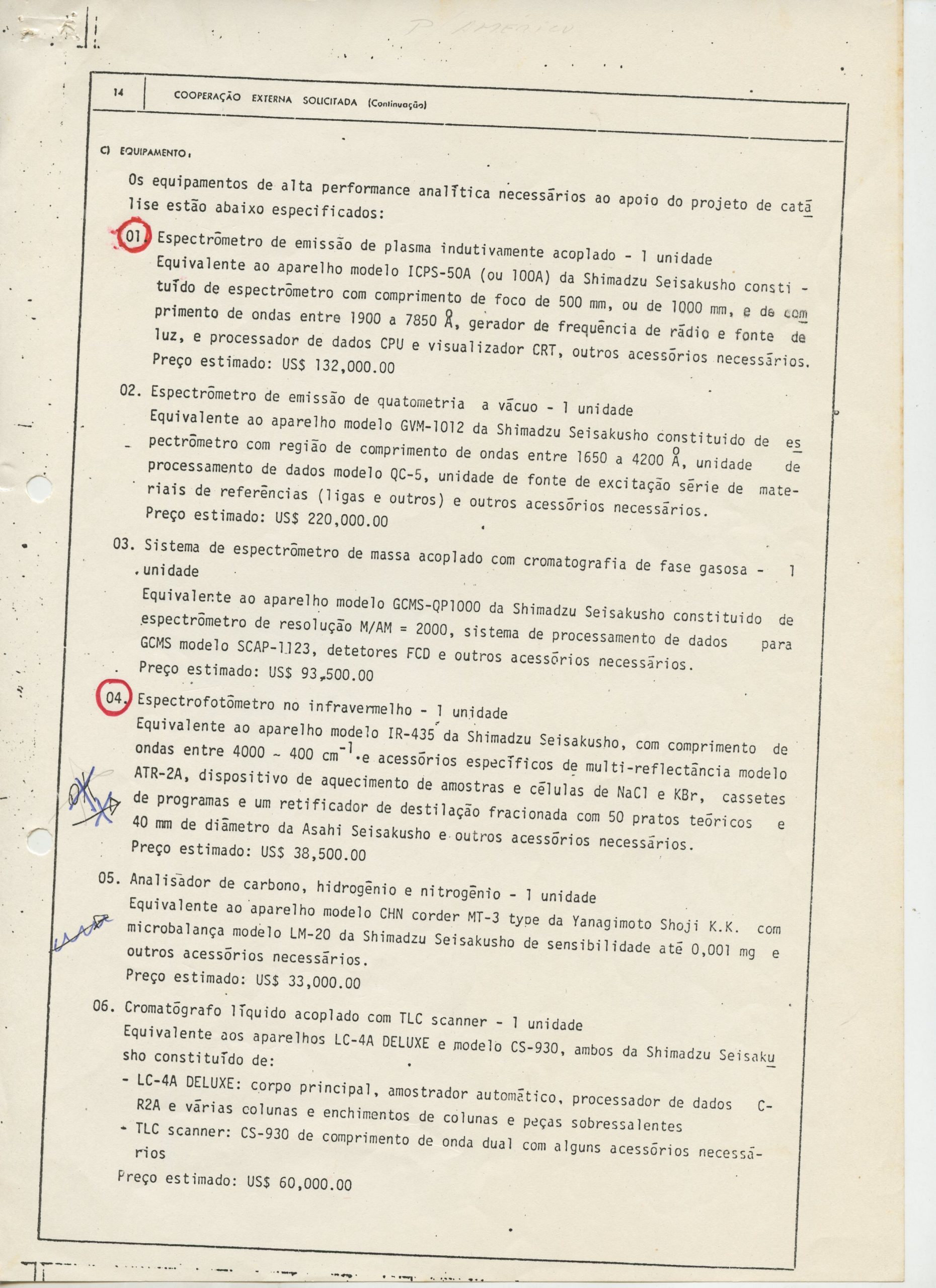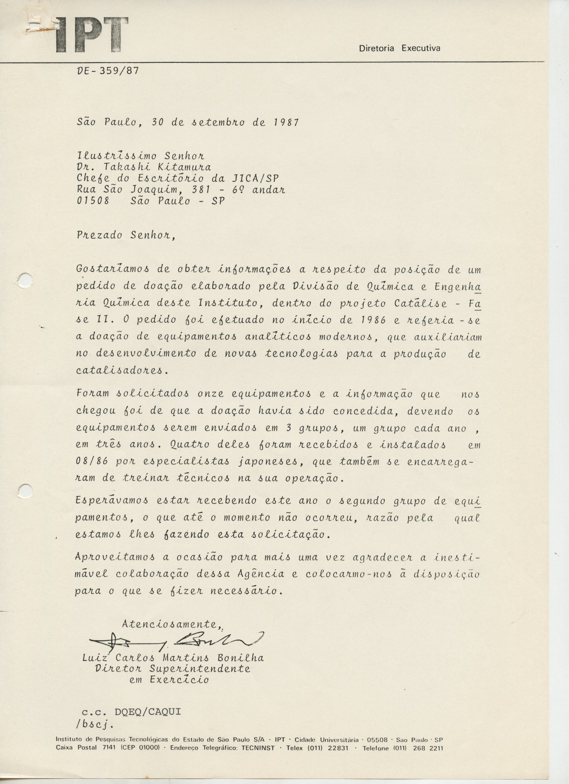 Documentos referentes à 2ª fase do Projeto Catálise Demonstrativos de despesas de importações da JICA Relatório de equipamentos doados Ofícios, comunicados, memorandos referentes ao processo de importação