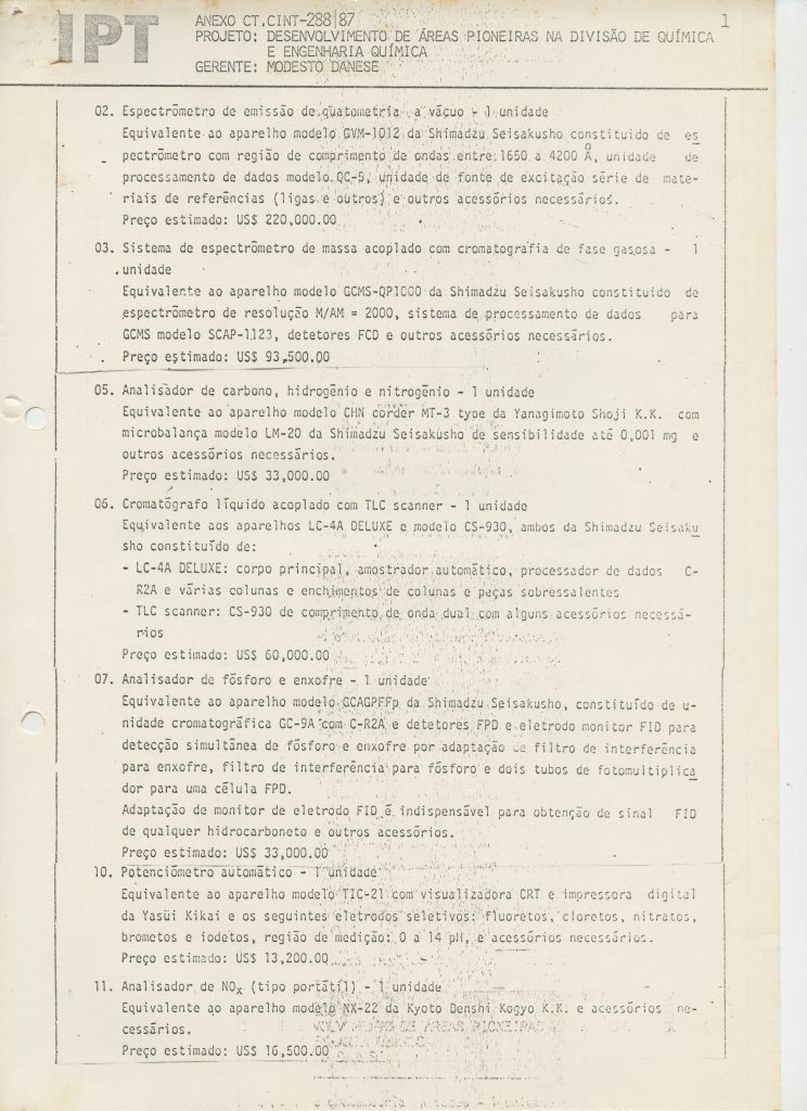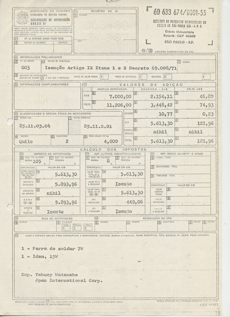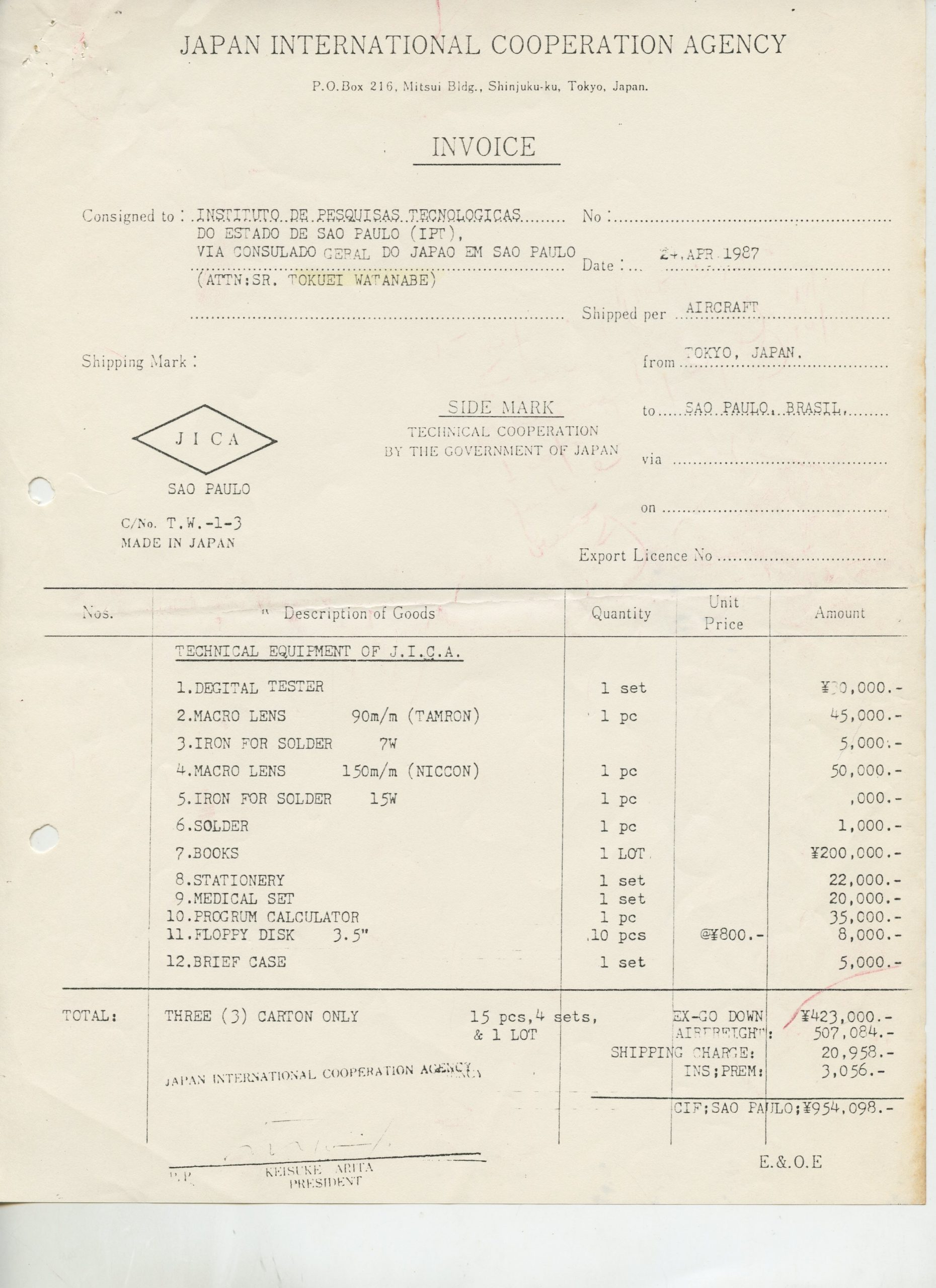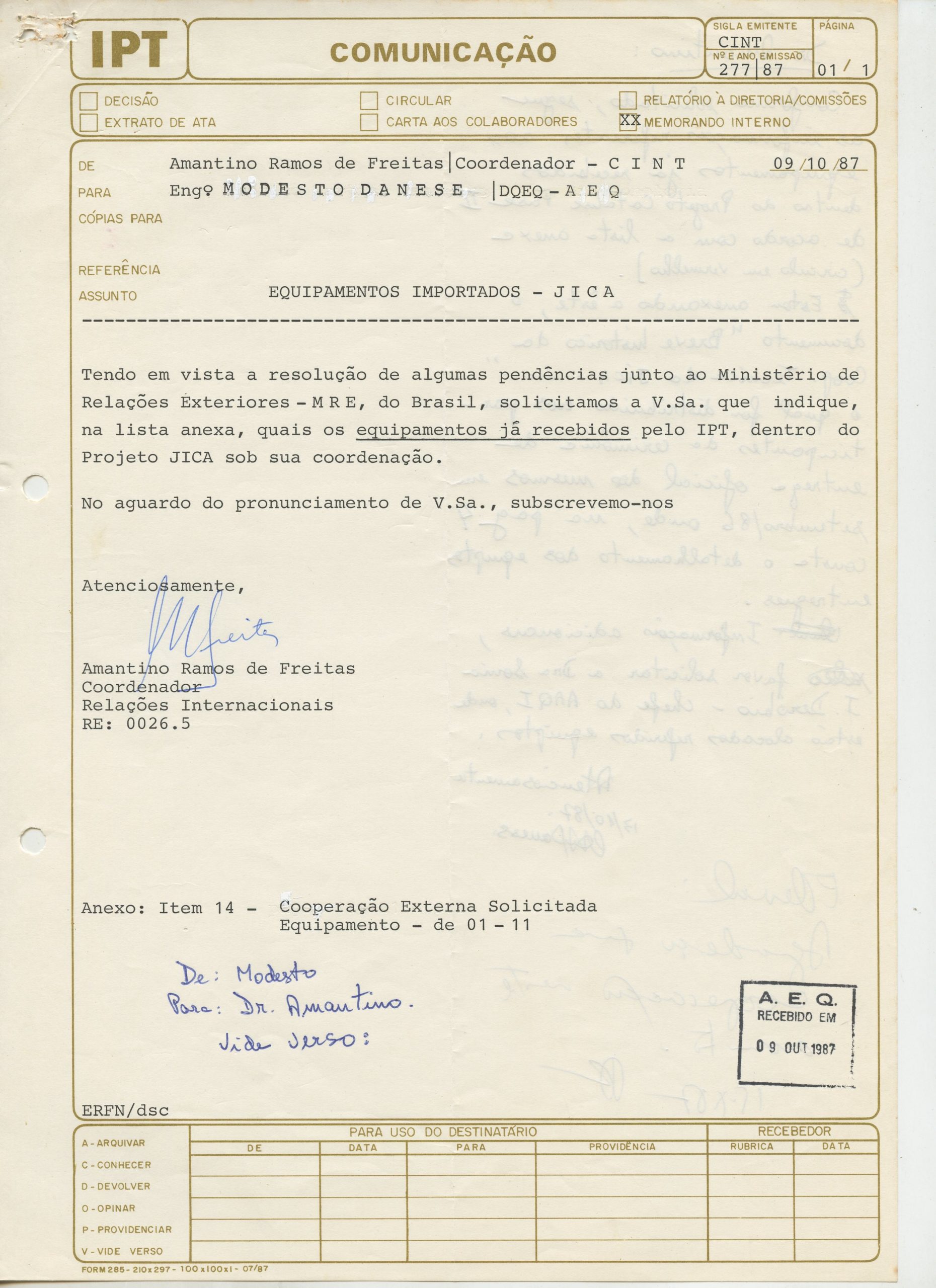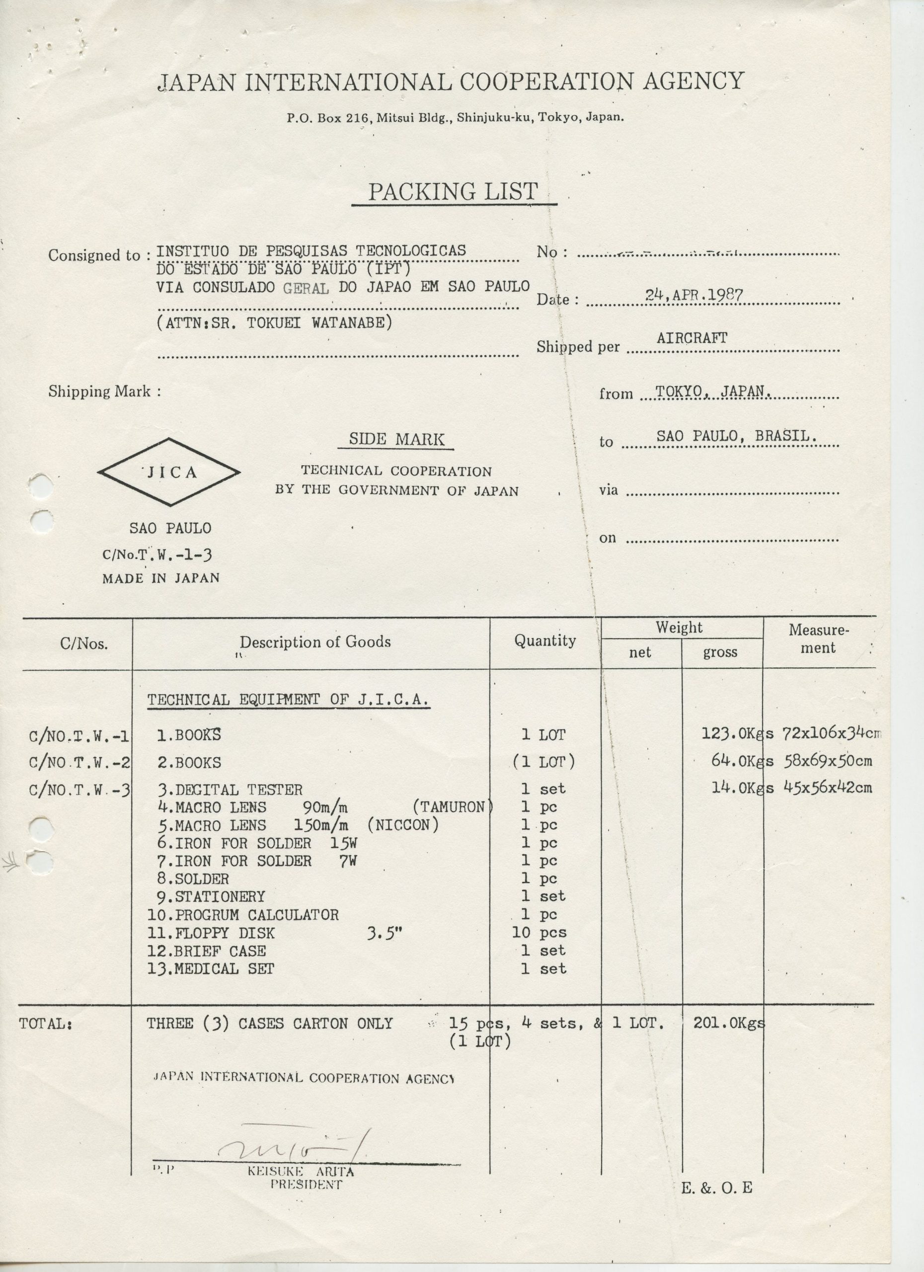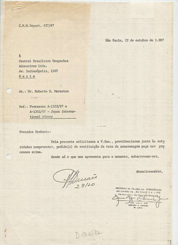 Documentos referentes à 2ª fase do Projeto Catálise Demonstrativos de despesas de importações da JICA Relatório de equipamentos doados Ofícios, comunicados, memorandos referentes ao processo de importação
