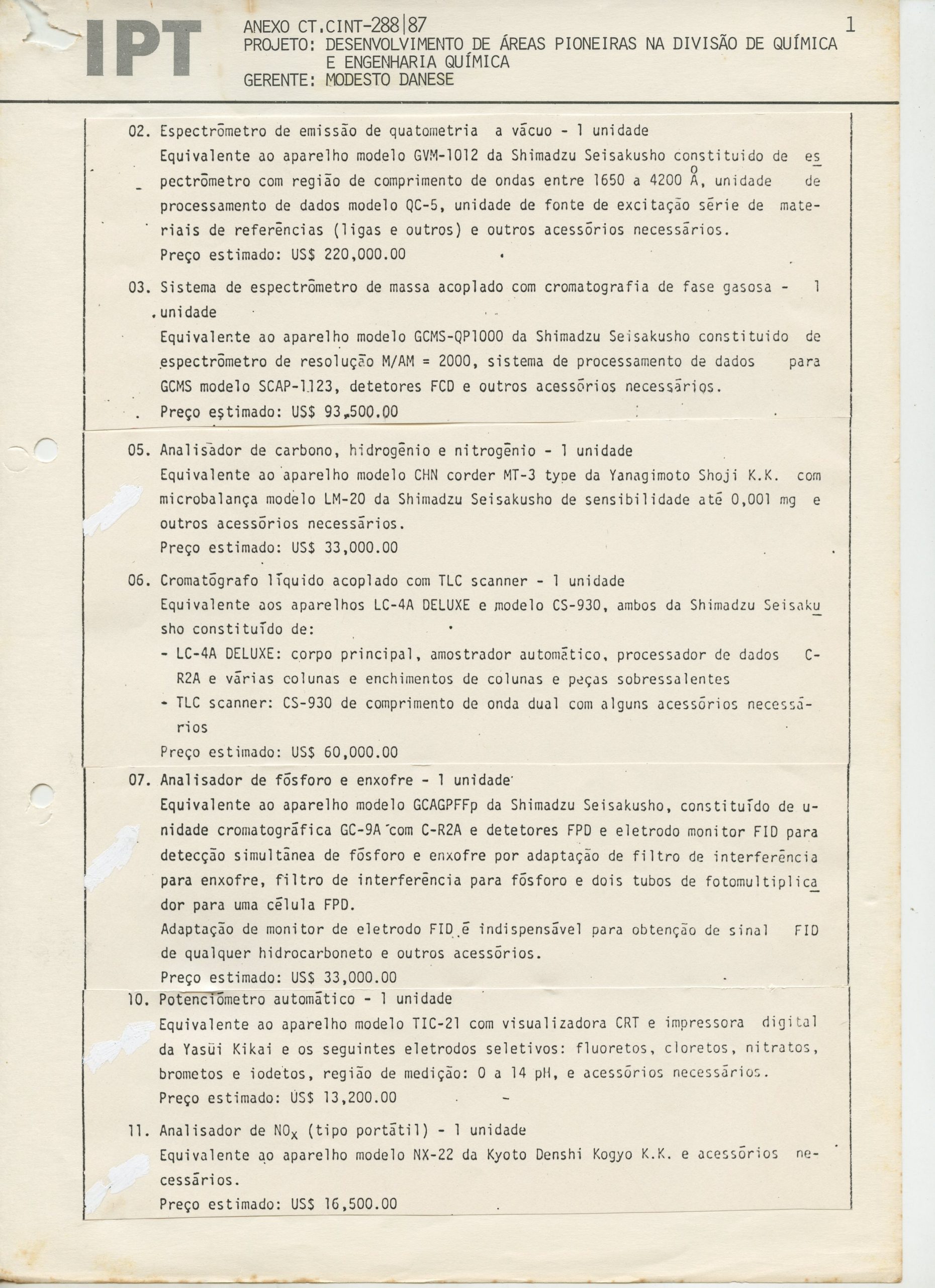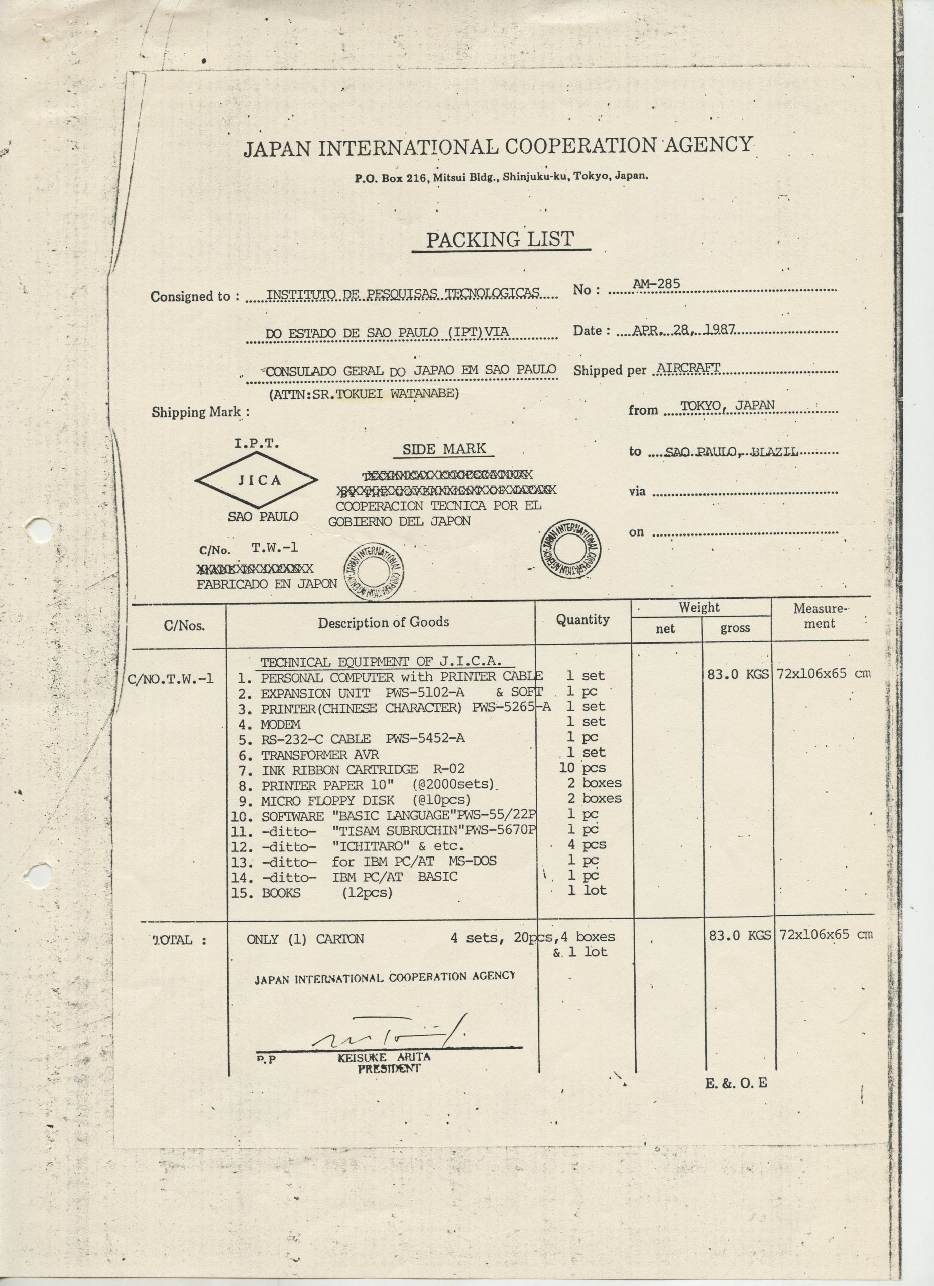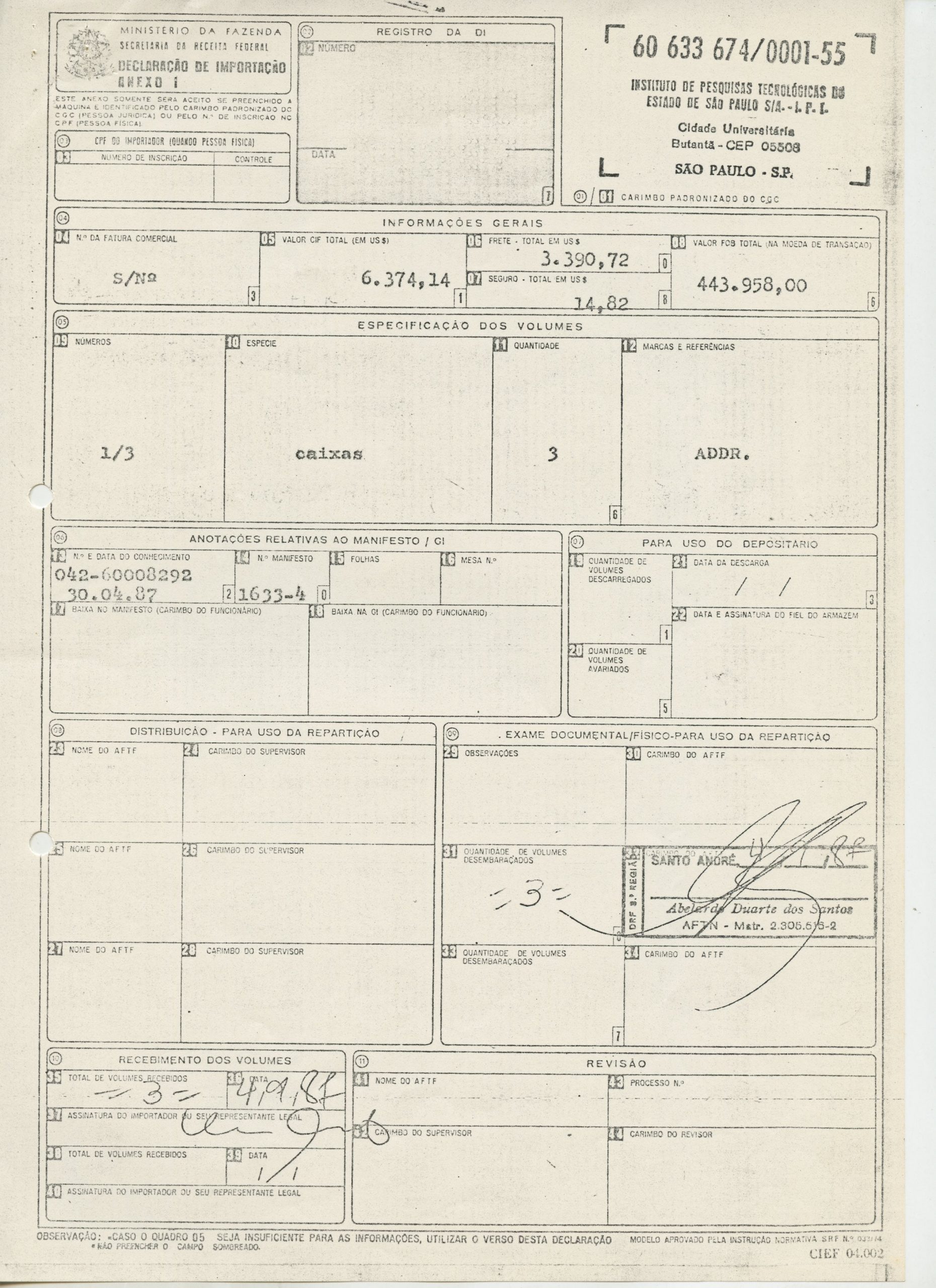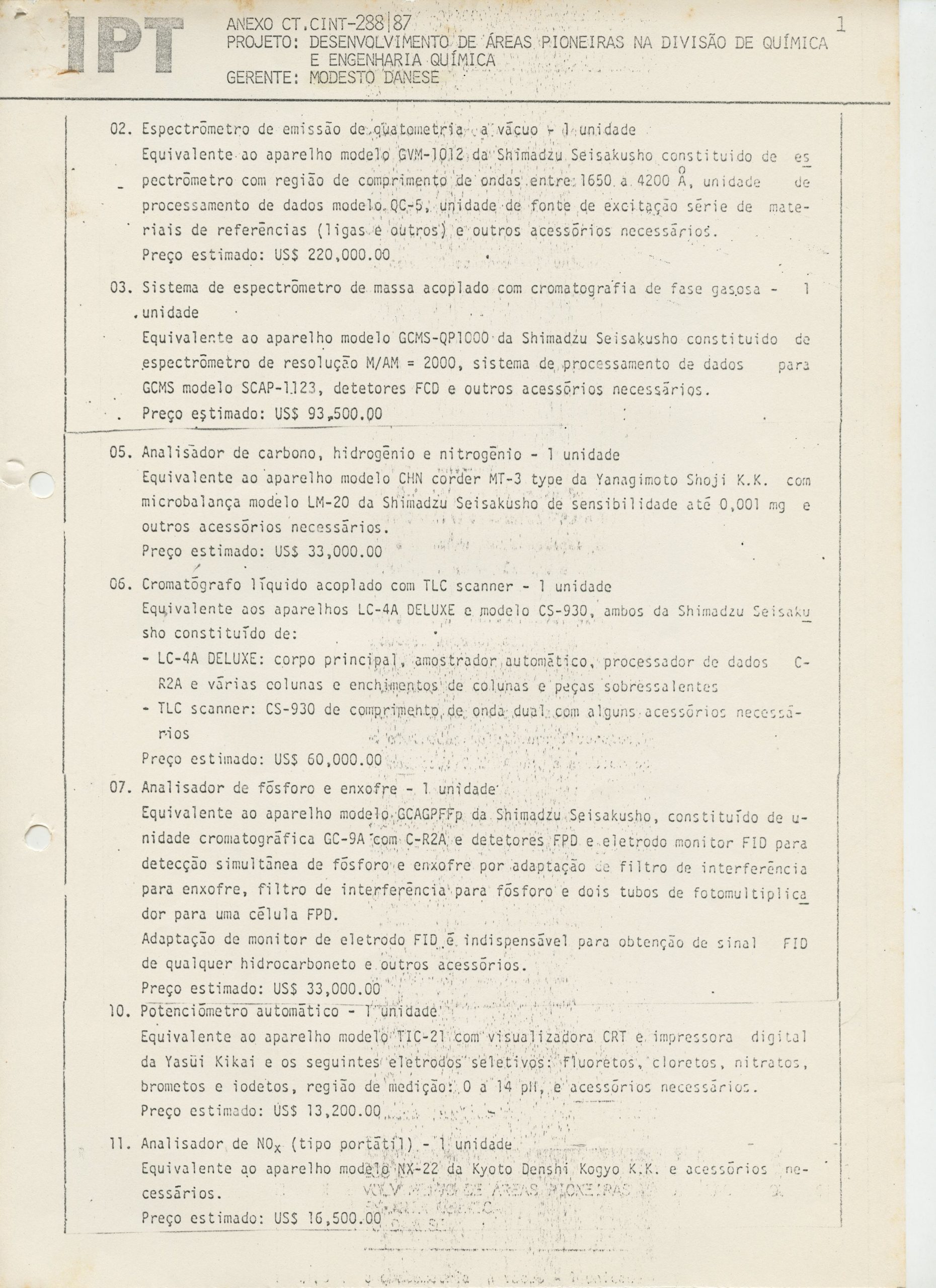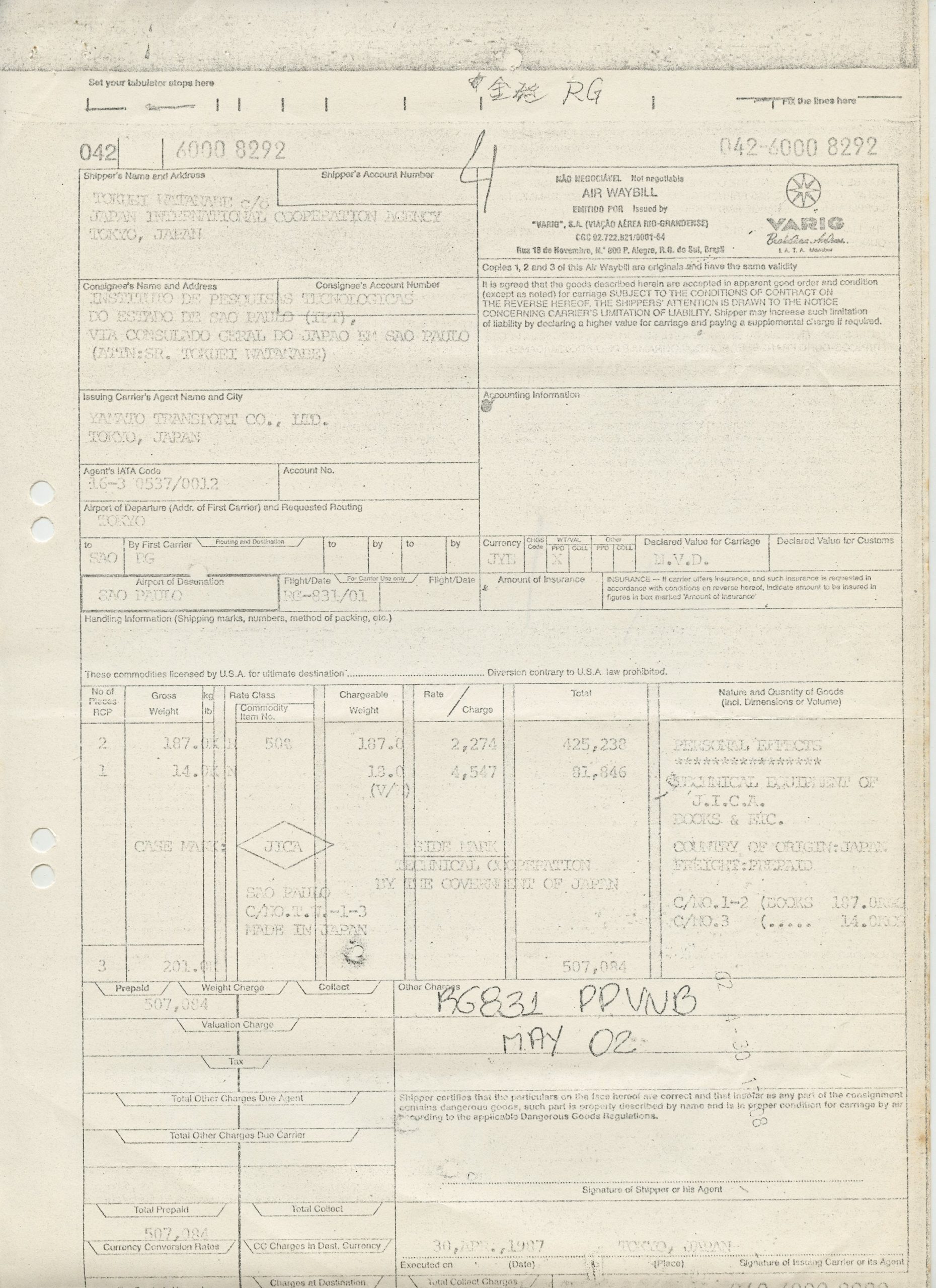Documentos referentes à 2ª fase do Projeto Catálise Demonstrativos de despesas de importações da JICA Relatório de equipamentos doados Ofícios, comunicados, memorandos referentes ao processo de importação