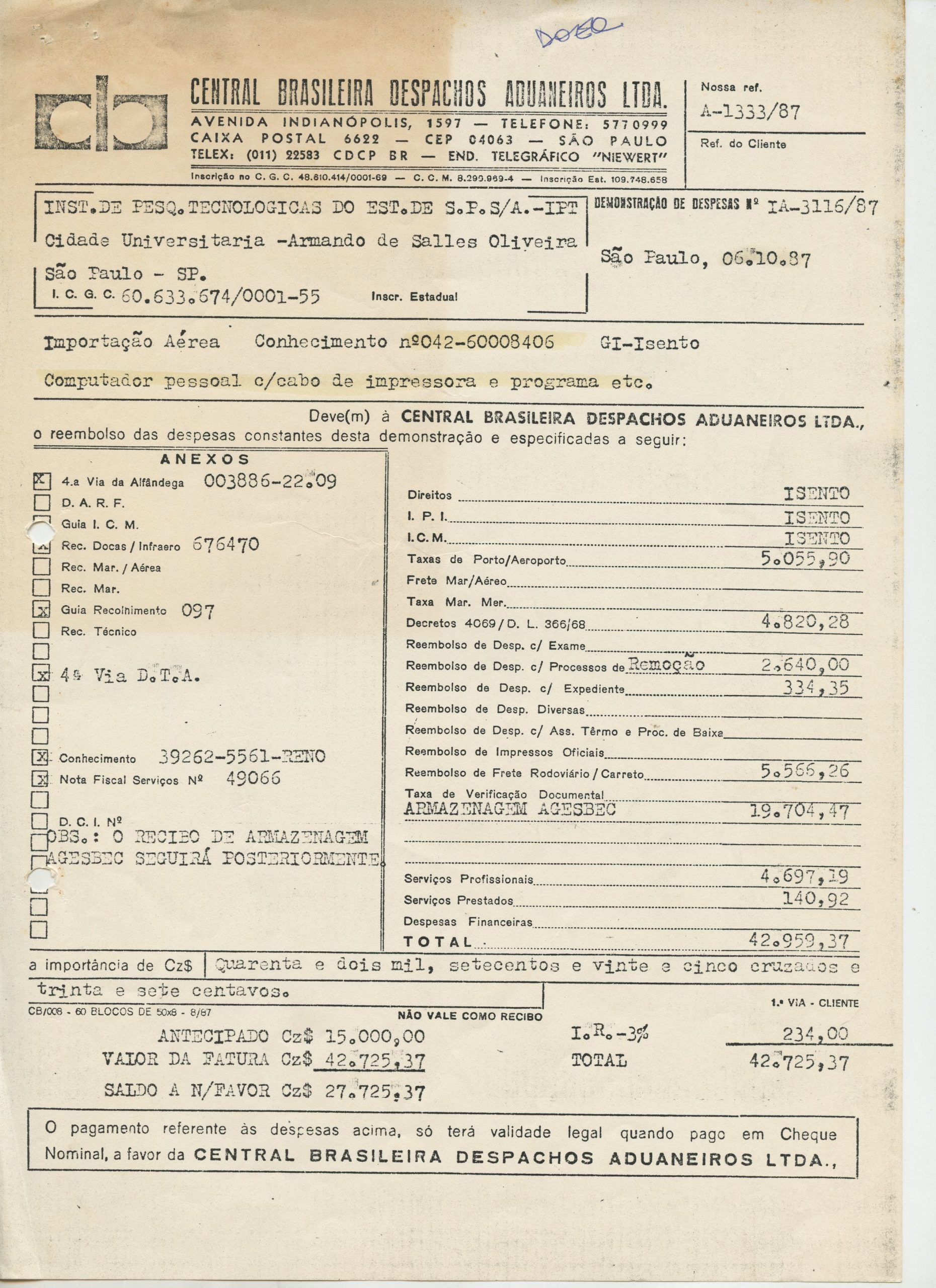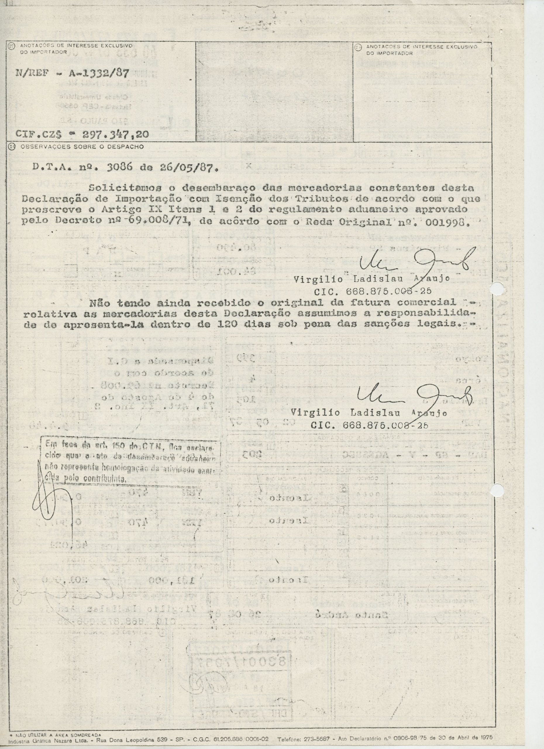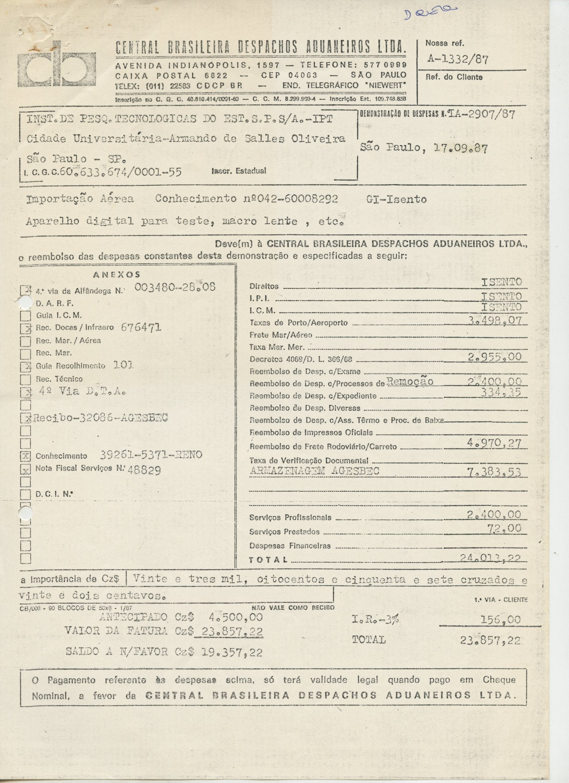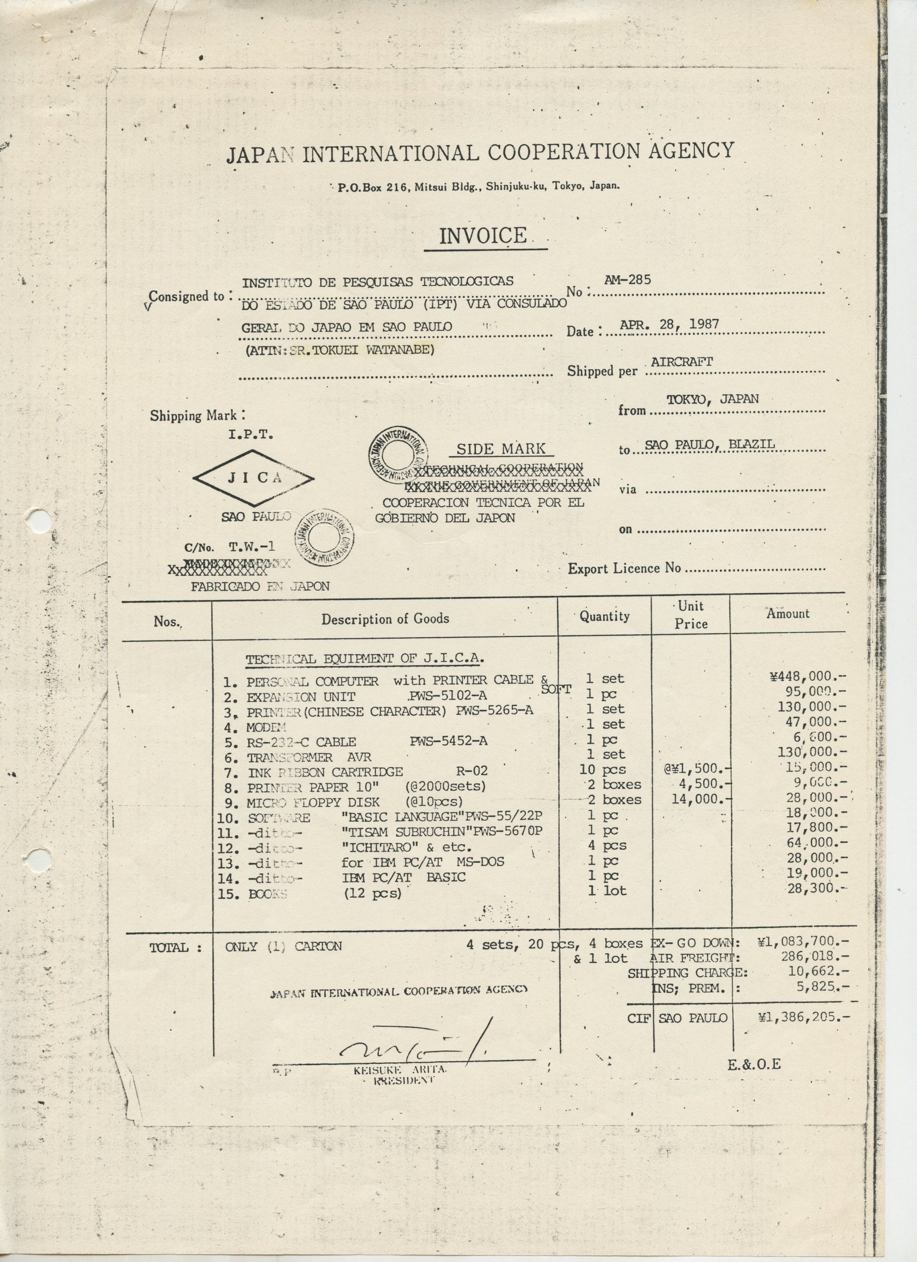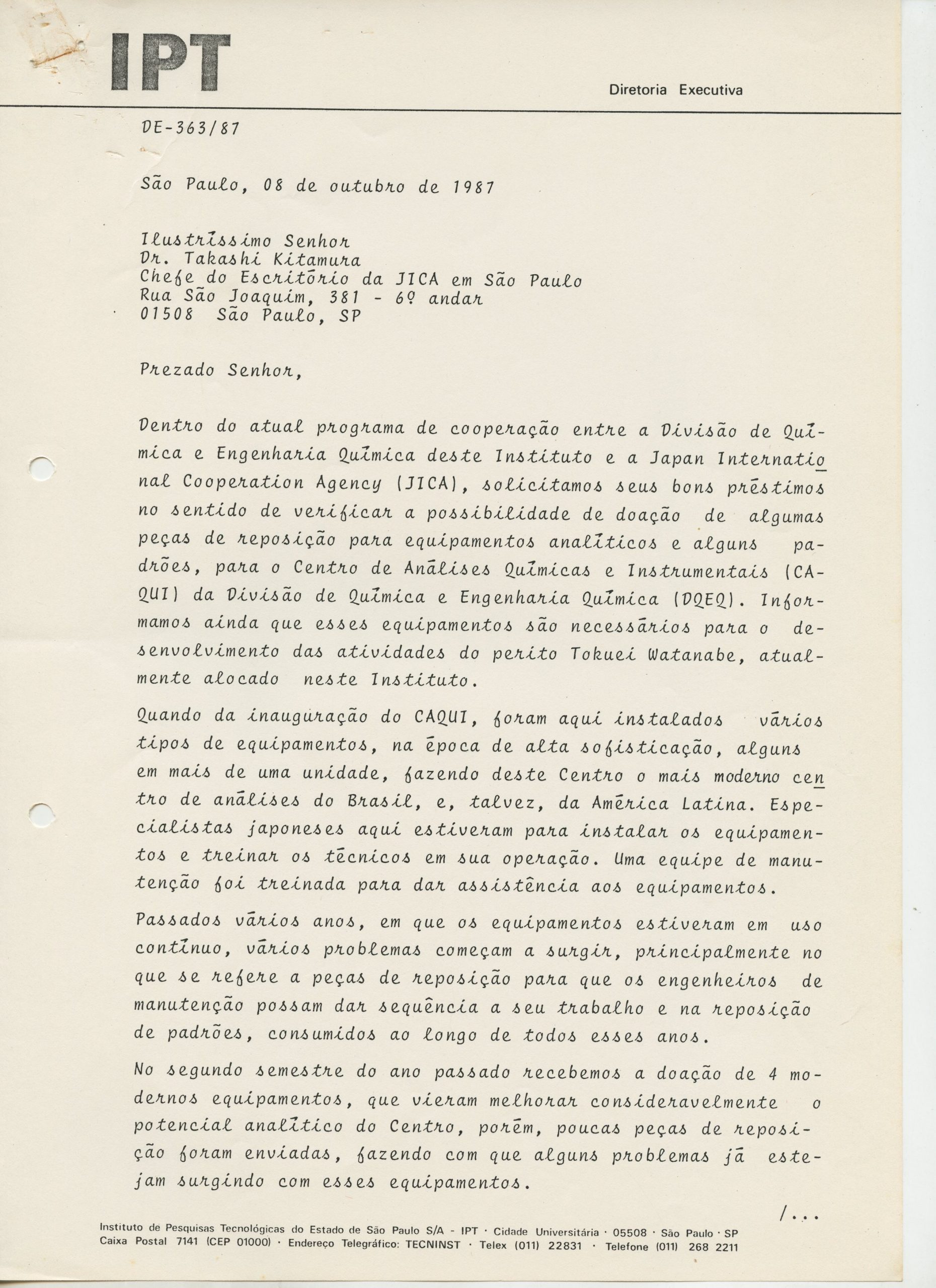 Documentos referentes à 2ª fase do Projeto Catálise Demonstrativos de despesas de importações da JICA Relatório de equipamentos doados Ofícios, comunicados, memorandos referentes ao processo de importação