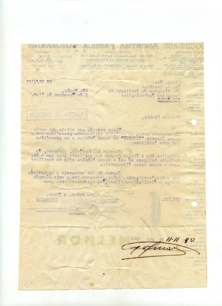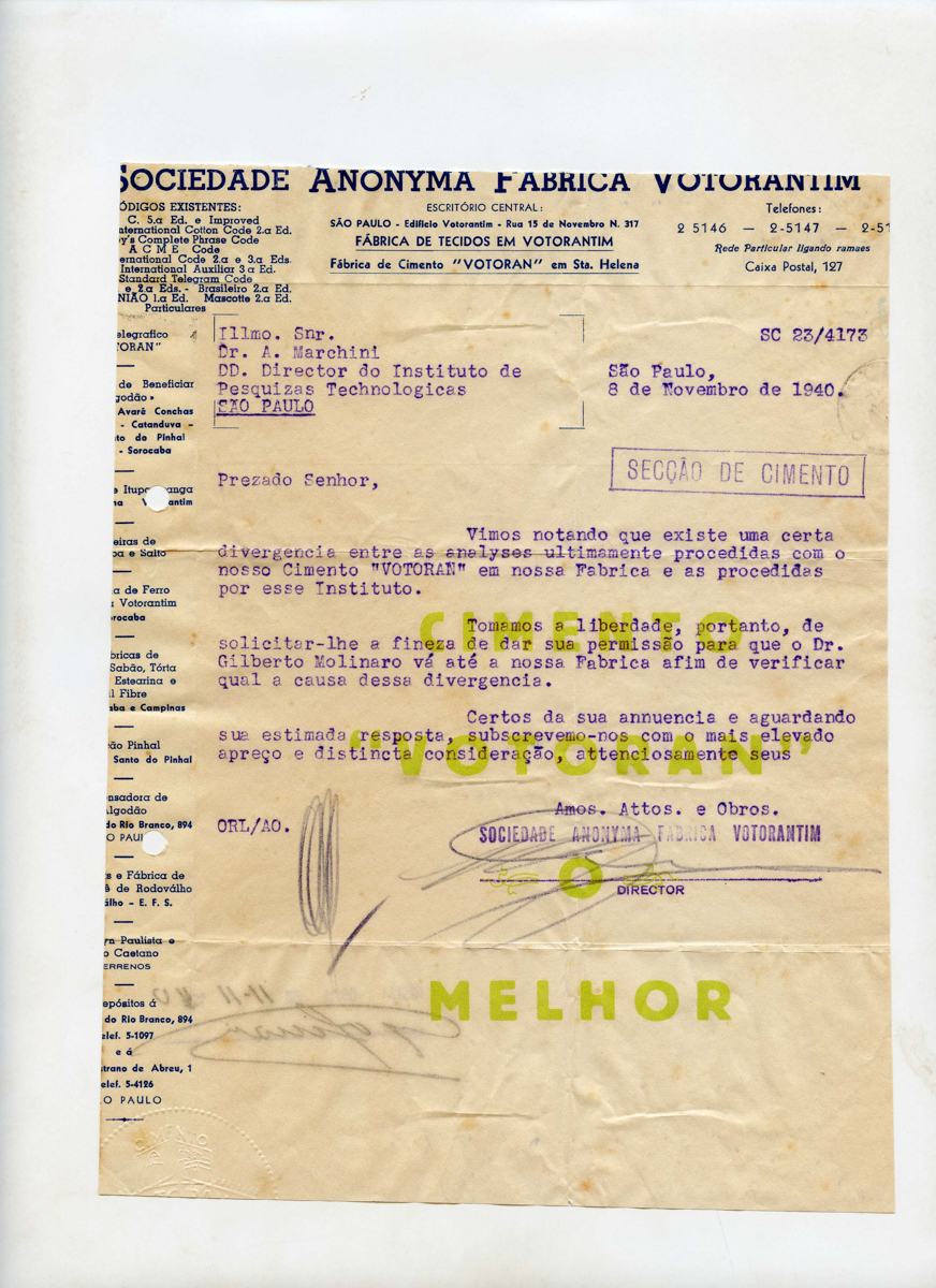01.001.0112.0205_28129 Baixar 01.001.0112.0205_28229 Baixar 01.001.0112.0205_28129 01.001.0112.0205_28229 Número de registro01.001.0112.0205Conjunto de itens Conteúdo Carta do IPT à Sociedade Anonyma Fabrica Votorantim, informando o preço dos ensaios executados pelo IPT e resposta da Fabrica Votorantim, acusando o recebimento Grupo Memória Institucional Subgrupo Memória da ciência Data [__/__/1940] Quantidade de documentos A4, 6 folhas Procedência Memória Histórica IPT Item anterior01.001.0112.0204 Próximo item01.001.0112.0206